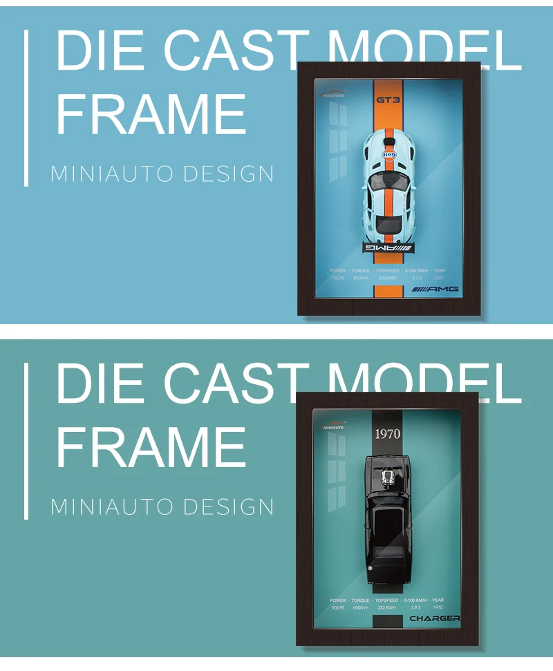 1:32 3D Photo Frame Wall Hanging Paintings Alloy Metal Diecast Model Car Home Trend Toy Decorations Display Valentine's Day Gift