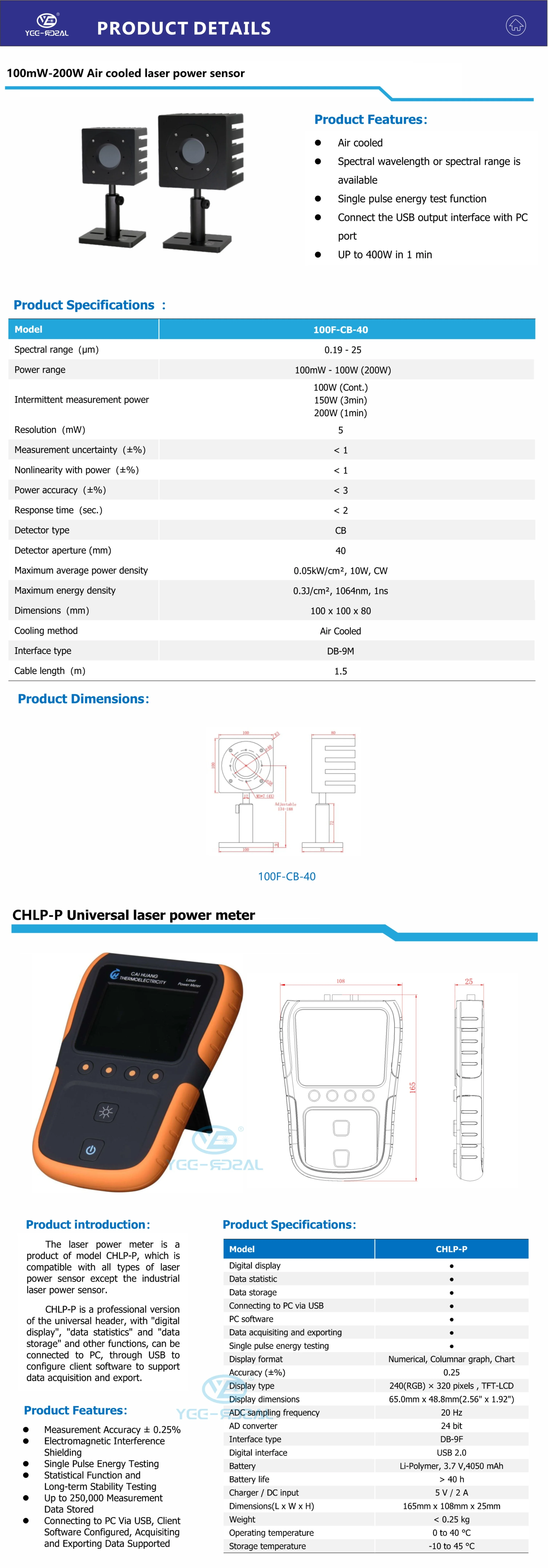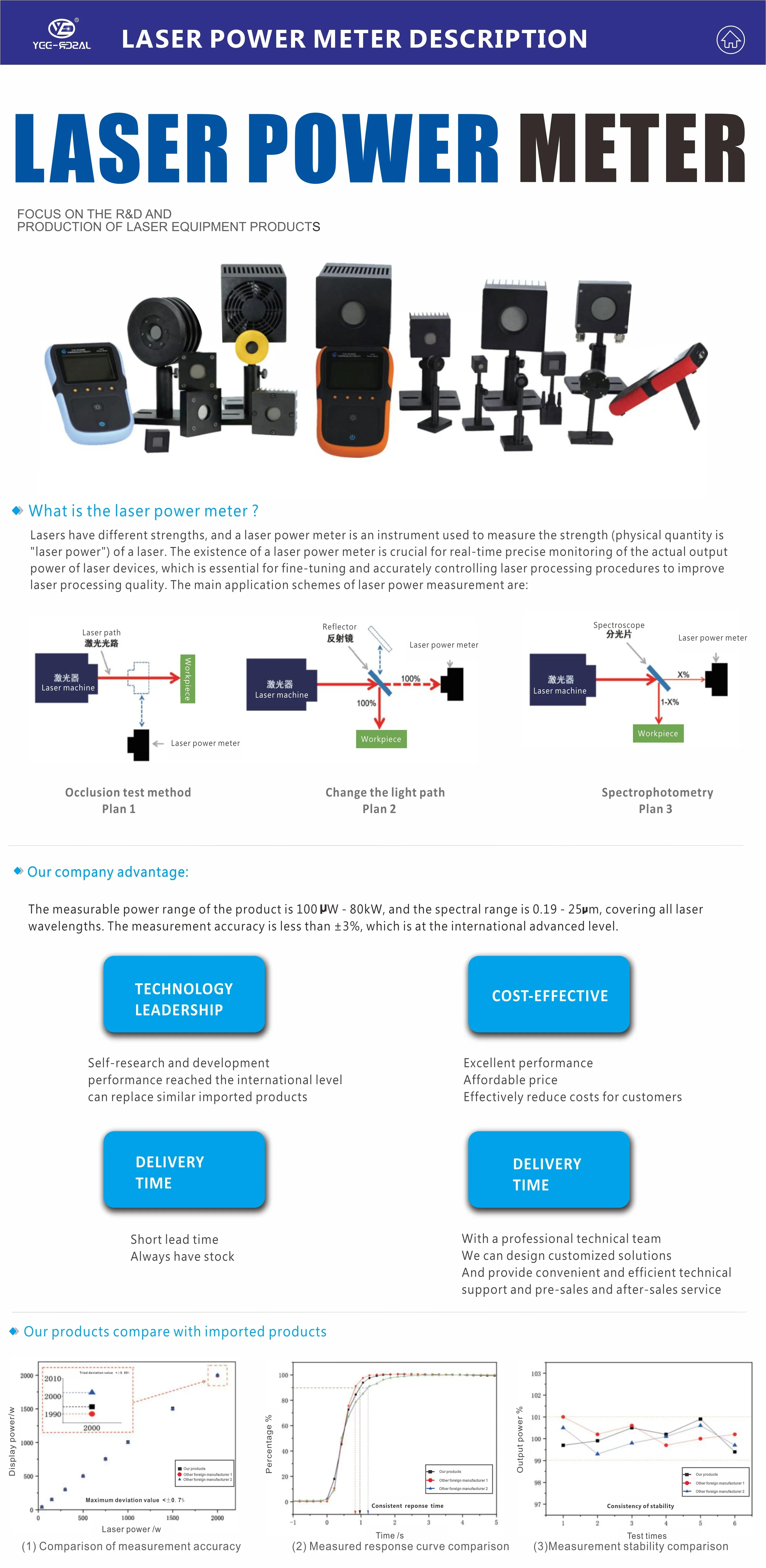 Laser power meter is an instrument used to measure the power of continuous laser or the average power of pulsed laser in a certain period of time. It has been widely used in optical component manufacturing, laser equipment manufacturing, photovoltaic,semiconductor, lithium battery, communications, medical, industrial manufacturing and national defense research and other fields,covering the middle and lower reaches of the laser equipment industry chain. Including laser medicine, laser marking, laser cutting, laser drilling, laser welding, 3D printing and many other industries.