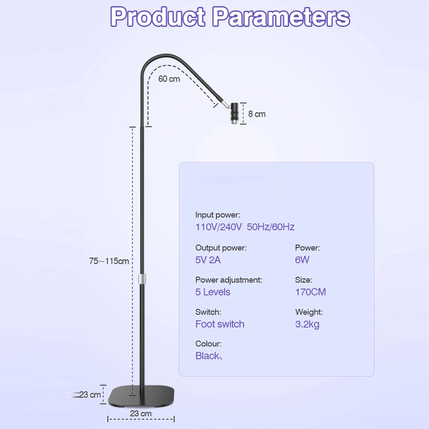 170cm Floor Standing Professional Nail UV Lamp Nail Dryer Stand 6W 5 Levels UV Lash Light Nail Tech Glue Lamp Foot Switch