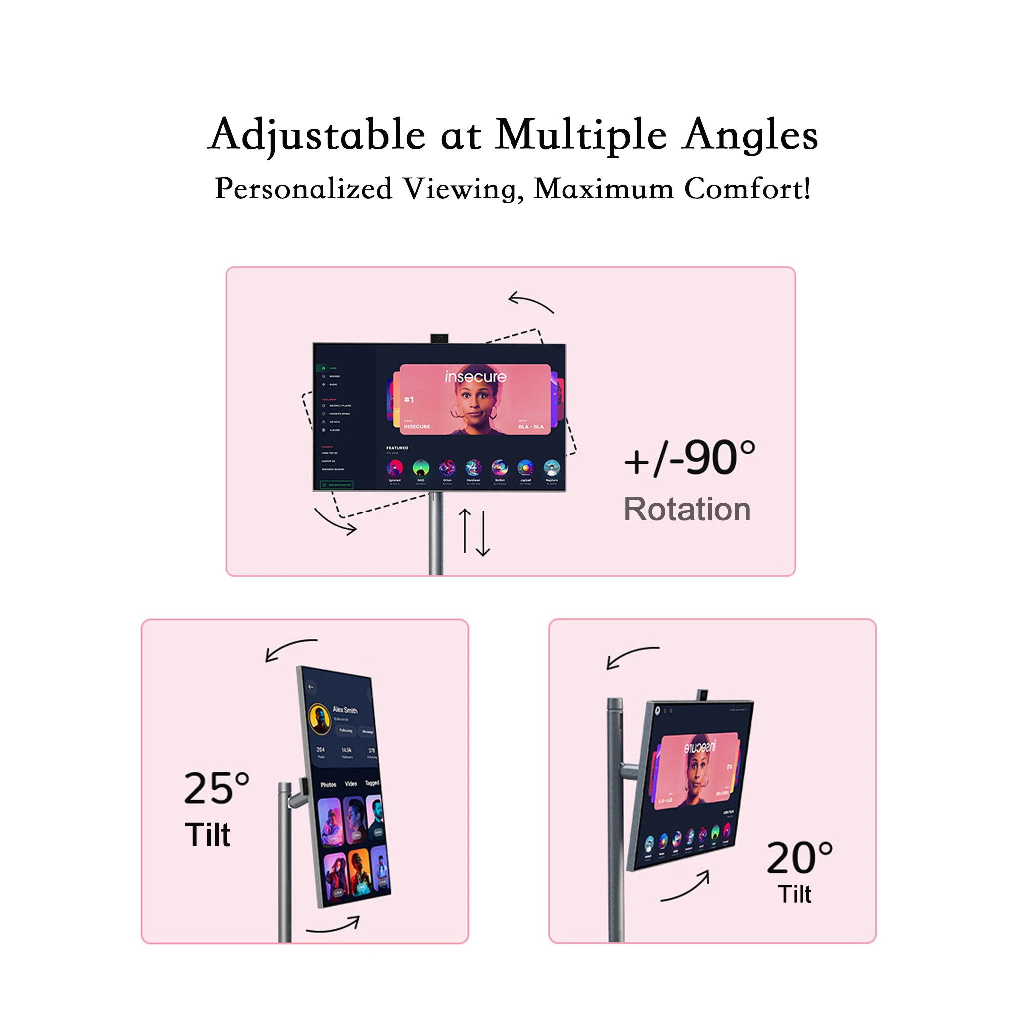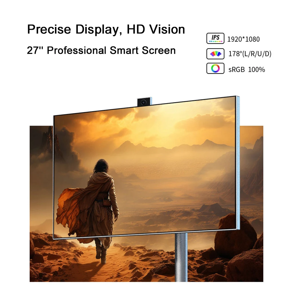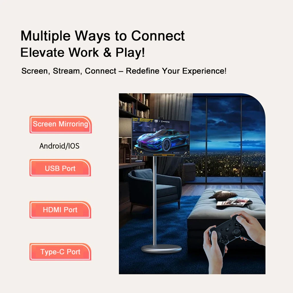 2025 Trend 27-Inch Touch Screen LED Display Portable 32-Inch HD Smart TV with 4G+64G Movable Stand Mobile Smart Television