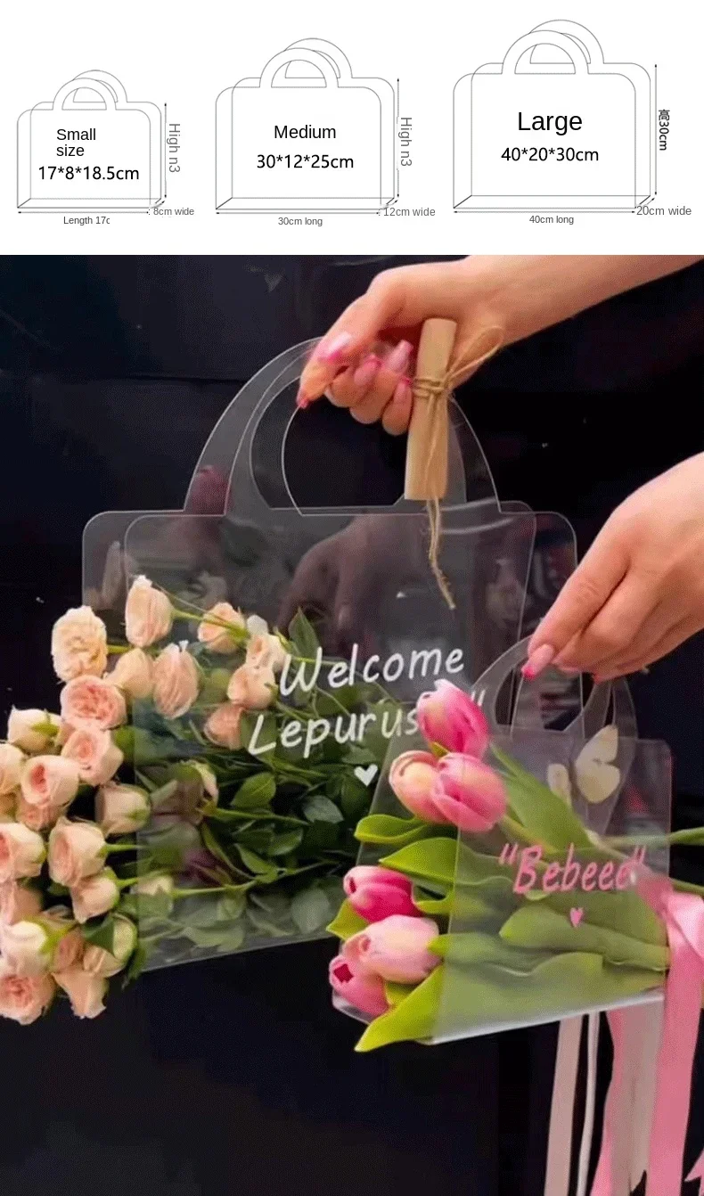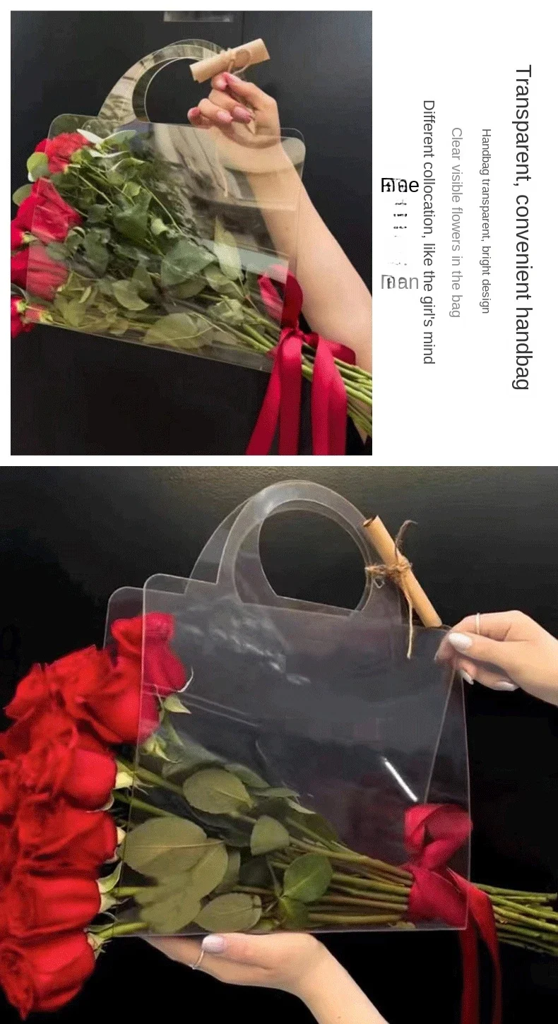 4-20PCS Flower Bag 50 Silk Clear PET Tote Bag Valentine's Day Transparent Gift Bag Simple Internet Popular Flower Packaging Bag