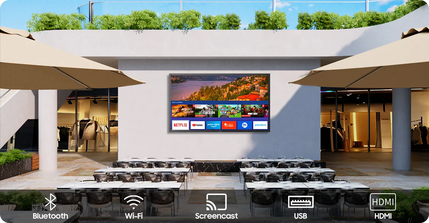 Elevate your outdoor TV experience by seamlessly connecting wirelessly to your preferred content providers.