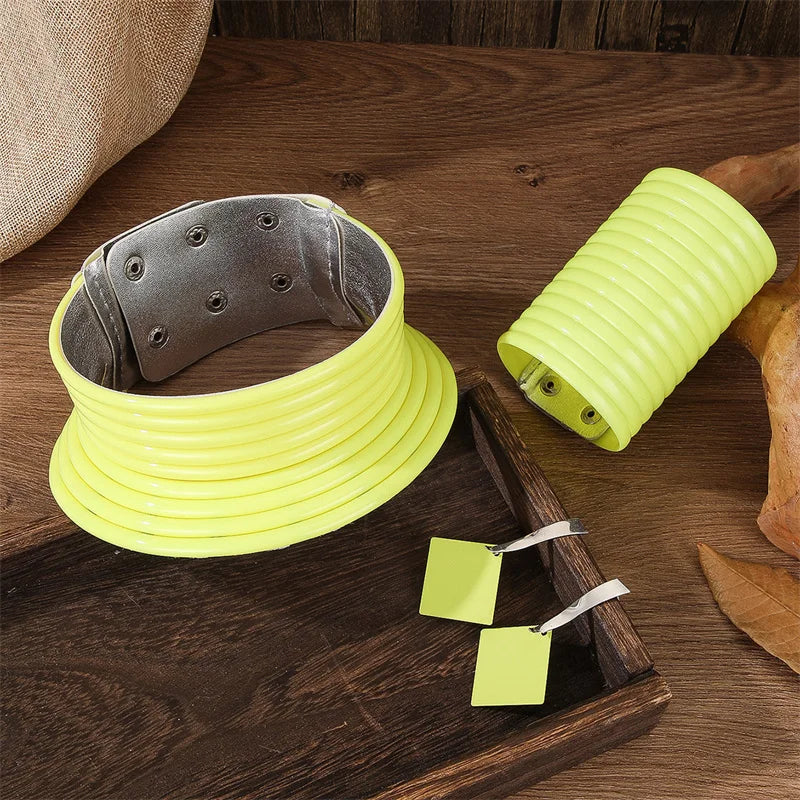 4pcs/set Vintage Leather African Jewelry Set Choker Necklace Bracelet Earrings Set For Women Collar Necklace Set Jewelry Gifts