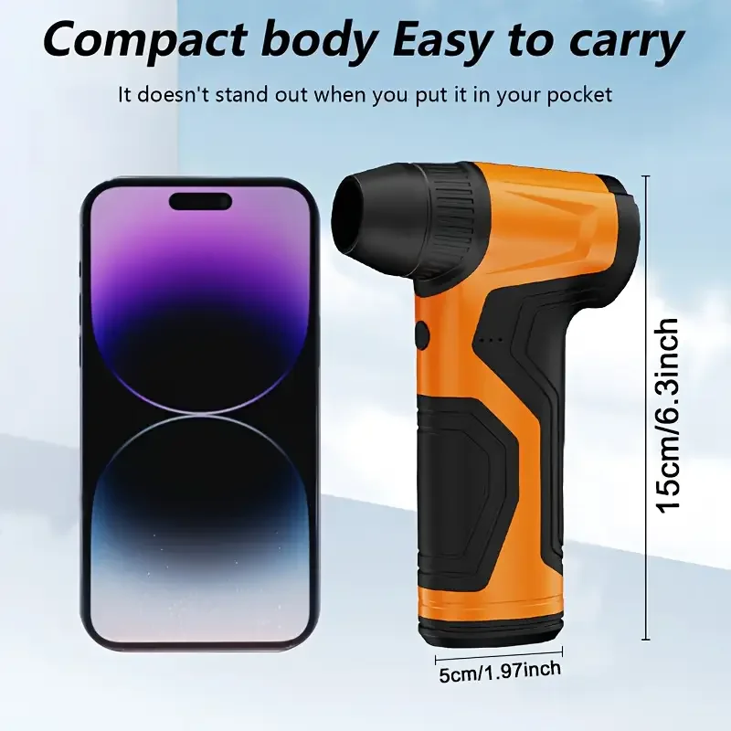 🙌【Mini-Portable Jet Blower】 This air blower is small in size, light in weight, but has a large wind speed. It is easy to carry and comfortable to hold. Weight:242g. Size:10.3*4.9*10.6cm. The shell is made of ABS plastic, which has impact resistance and ensures wear resistance during long-term use.