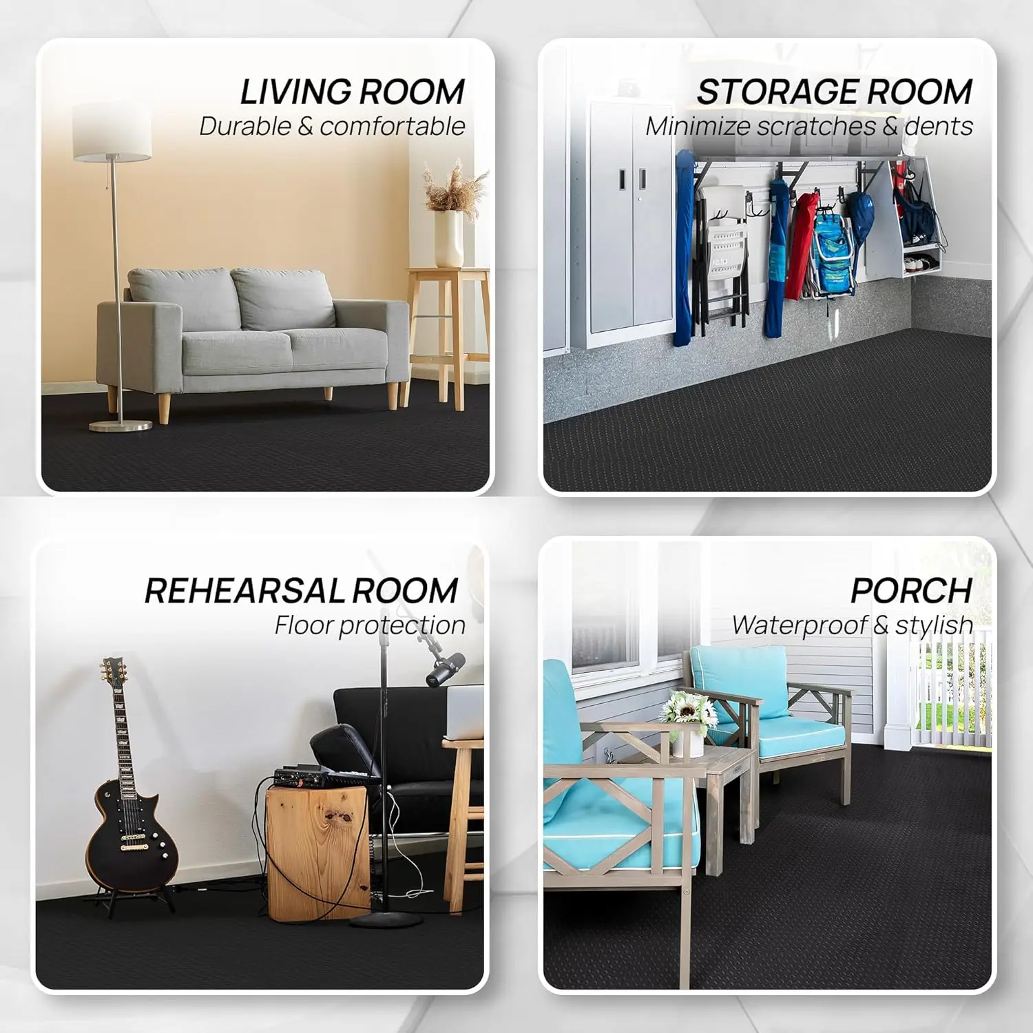 Protective Mat: This high-density EVA interlocking play mat provides excellent support and cushioning; it covers and prevents floor scratches while creating a comfortable workout surface for your home gym. It can be used with sports accessories or as a children's play mat.