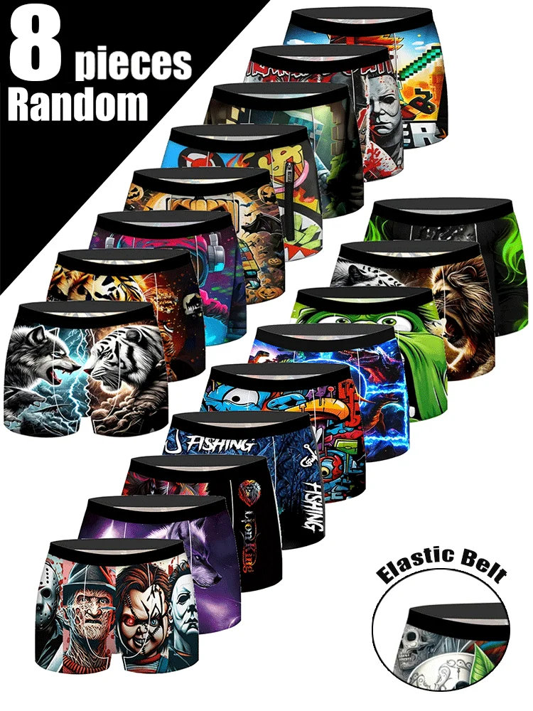 8Pcs Men's Boxer Briefs S-XXXL Soft Polyester Underwear Elastic Waistband Quick-Dry Breathable Lightweight Men Boxer Shorts