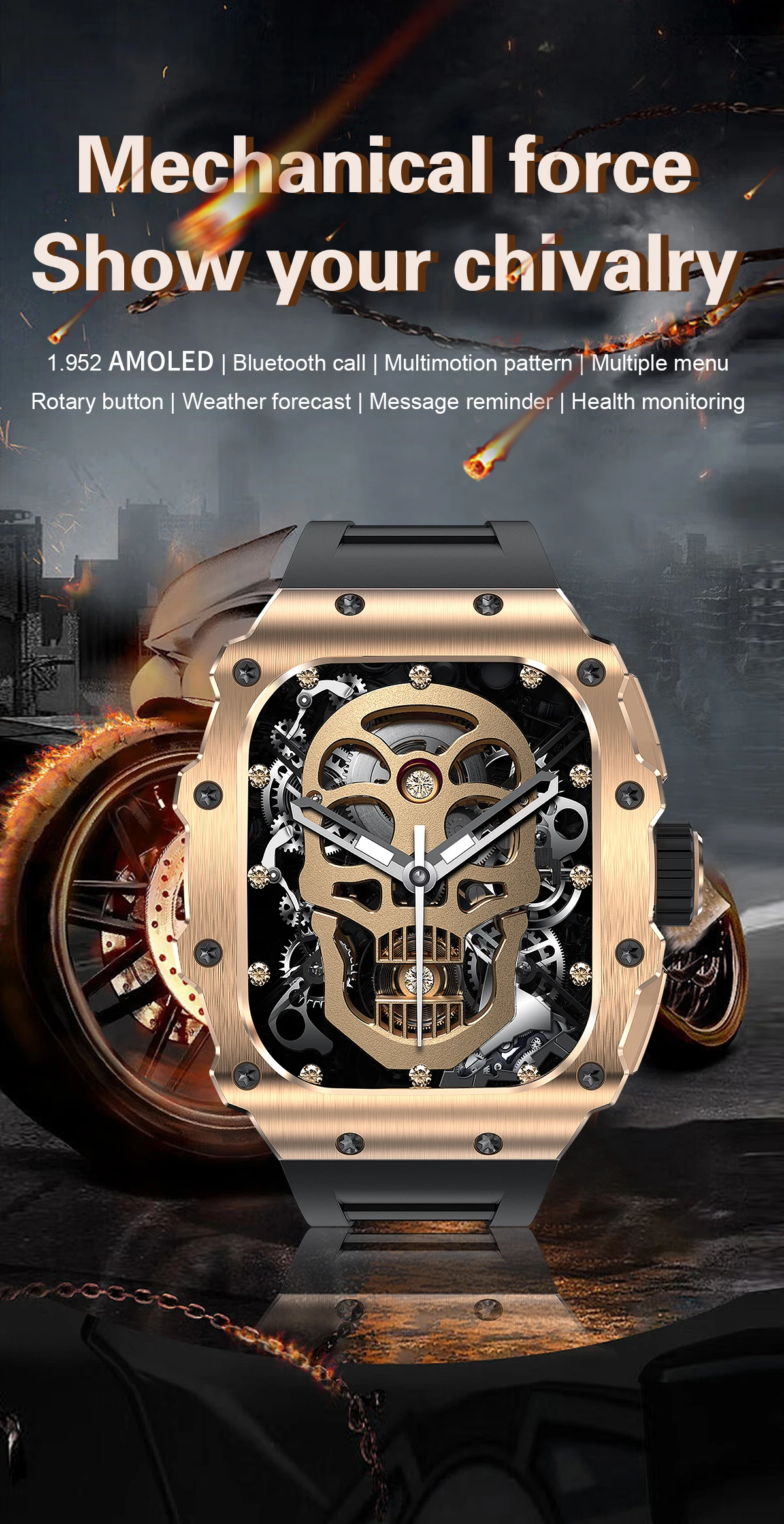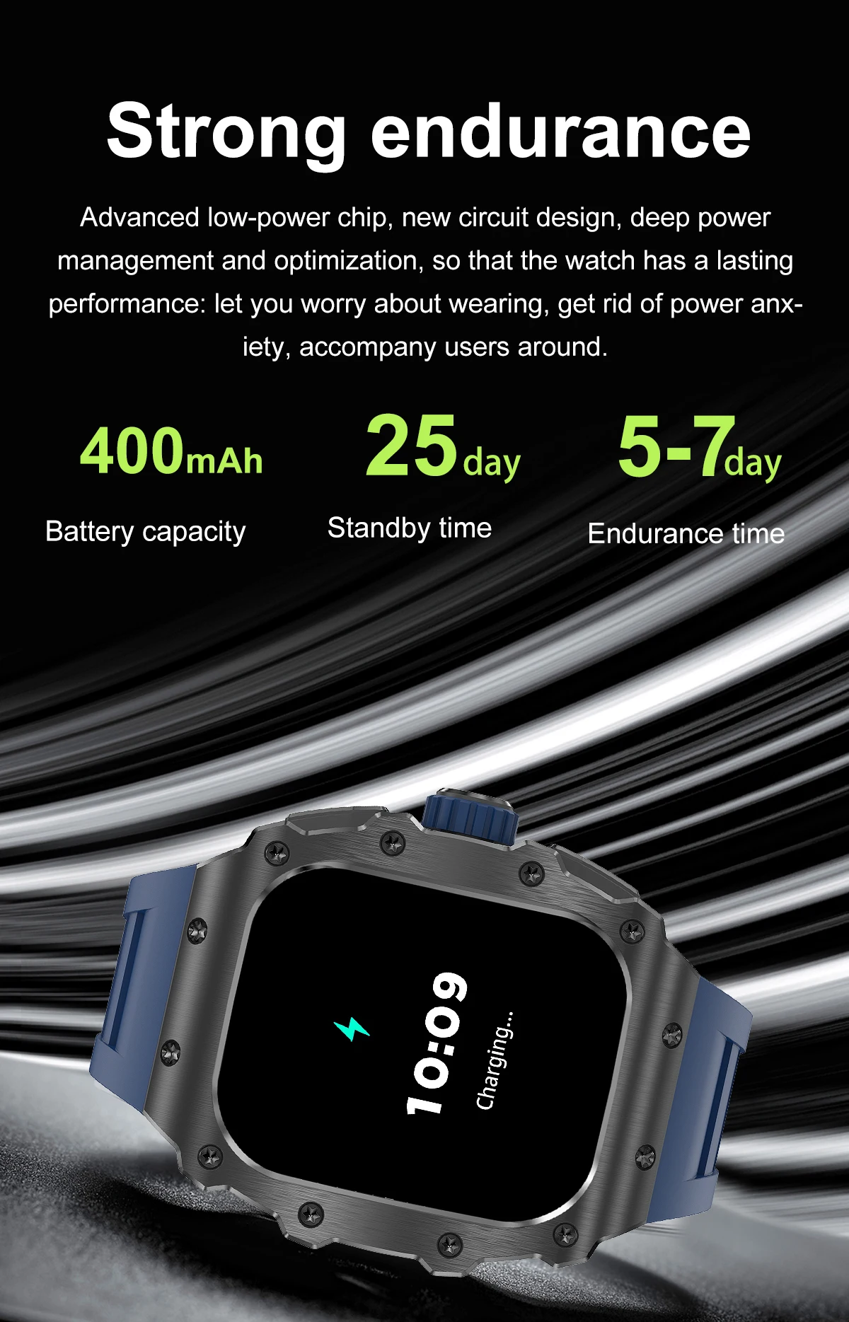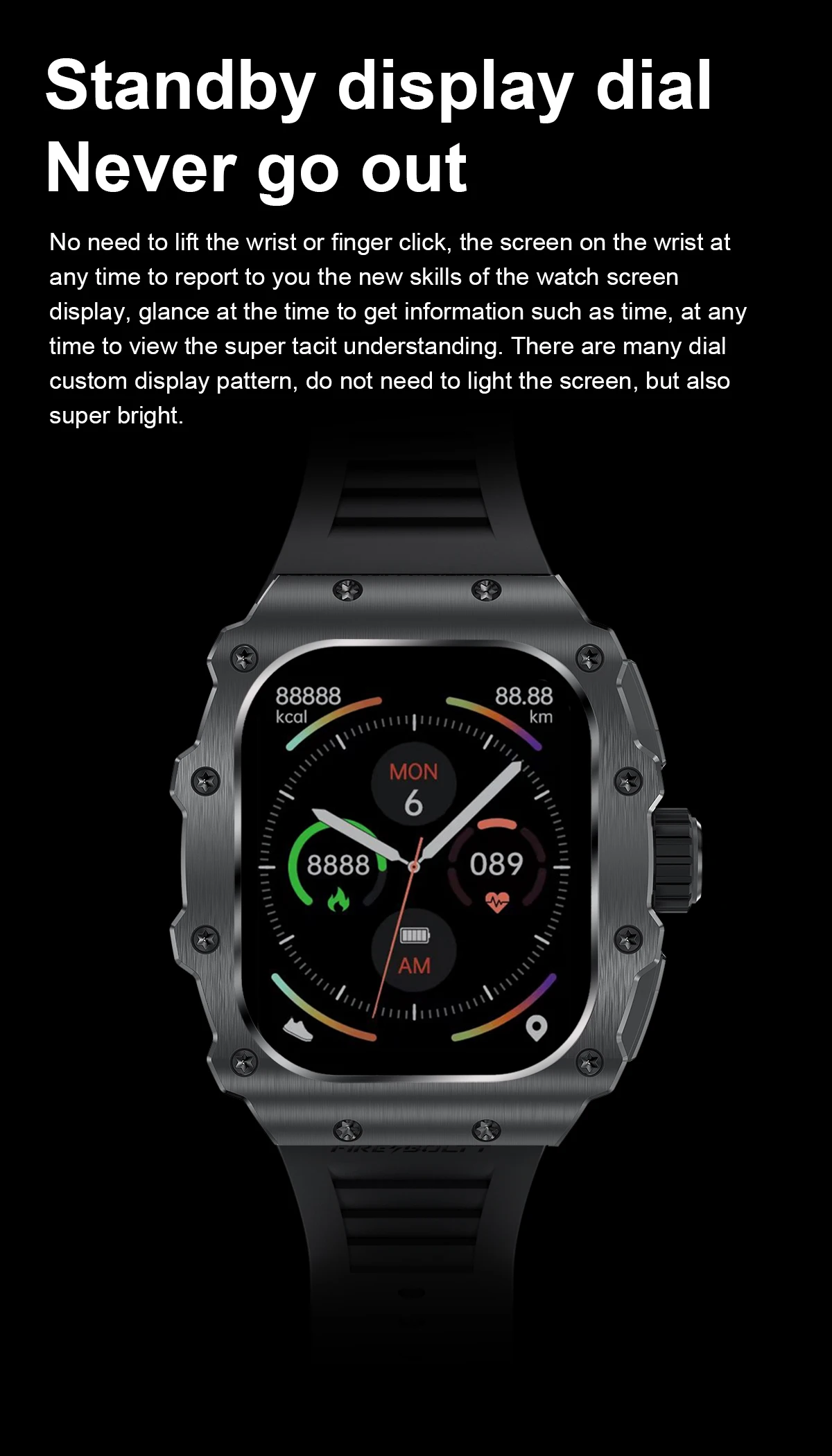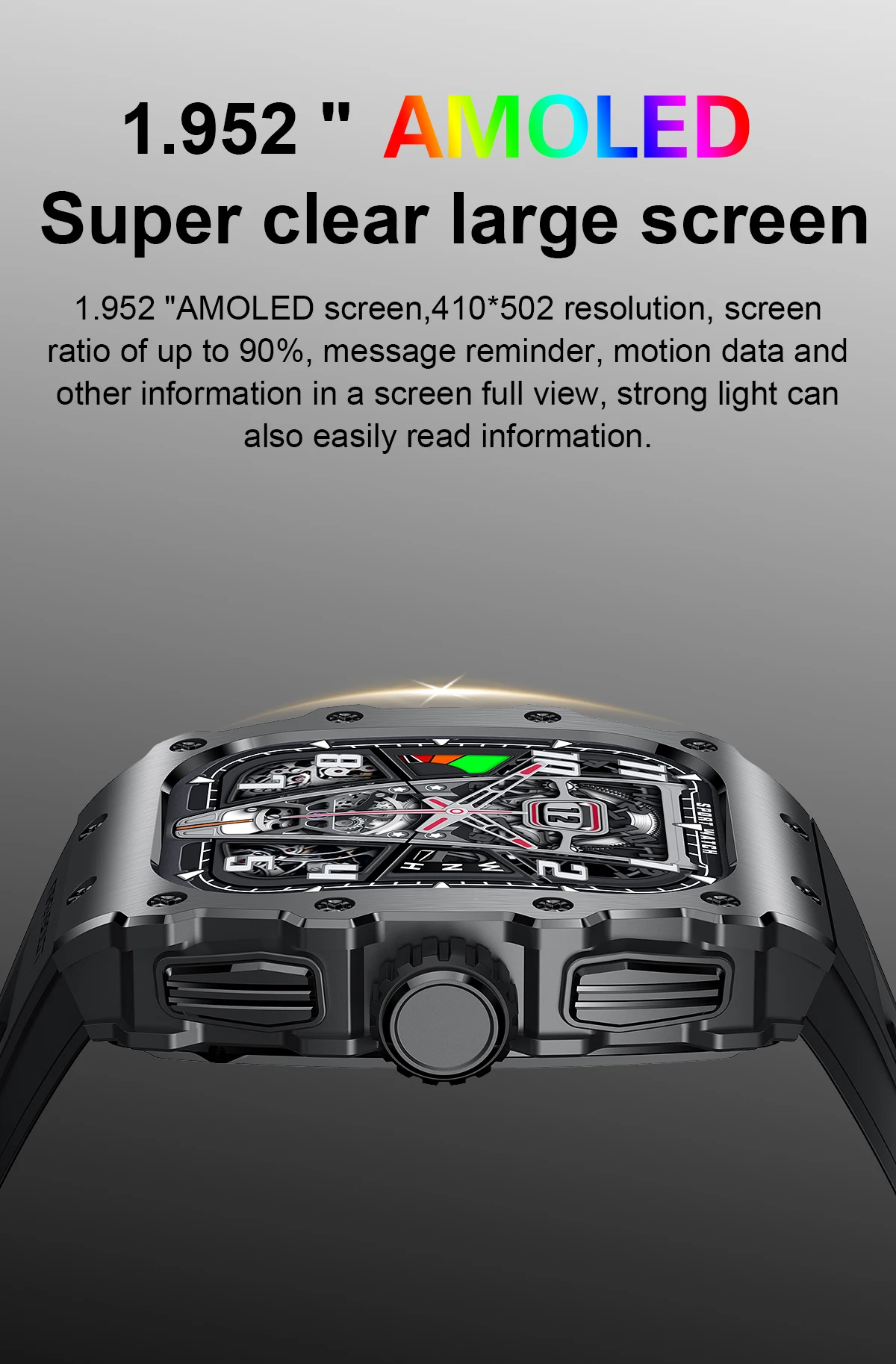 AK62 Smart Outdoor Sports Watch 3ATM Long-Life LED Stopwatch Timer AMOLED Display Leather Touch BT Compatible Android iPhone
