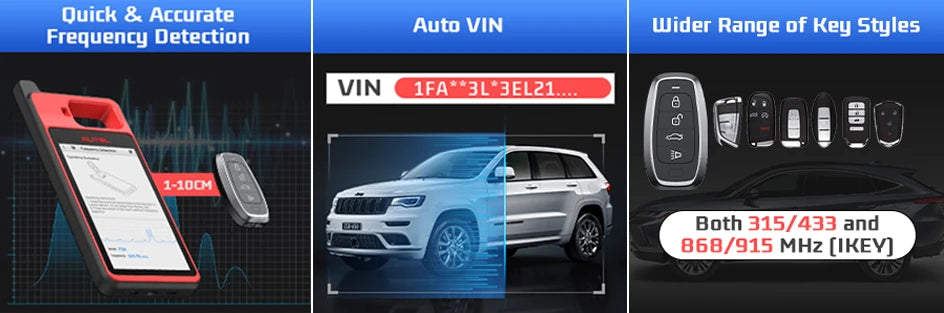 2. Dual-Band: Supports 8 series of Autel I~KEY & 37 kinds of appearance (continuously increasing with frequent updates), and is compatible with low frequency (315M/433M) and high frequency (868M/915M) two types.