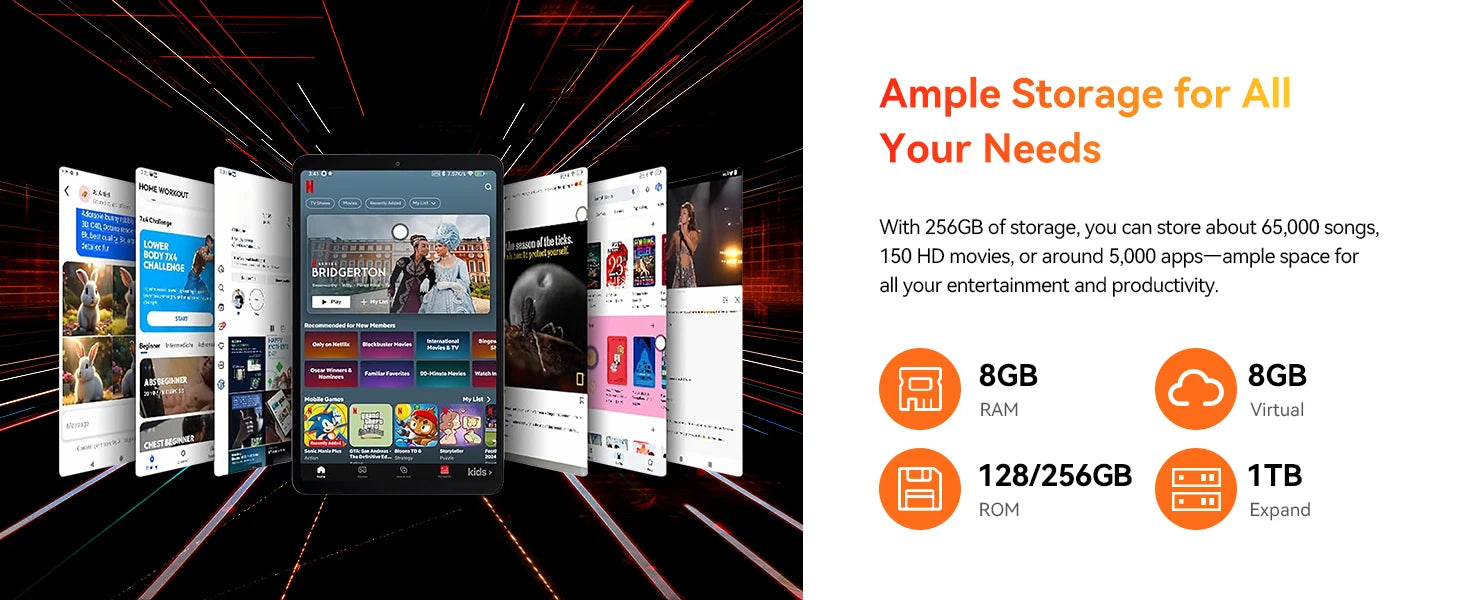 With 8GB RAM and 128GB ROM, the BPad Mini provides ample space for apps, games, and media files.