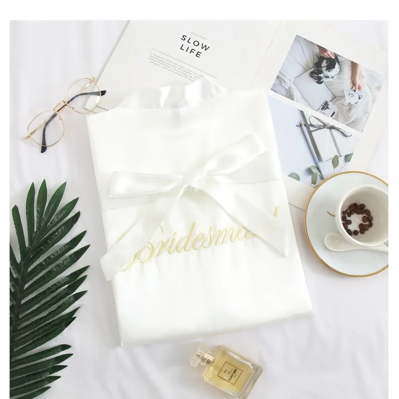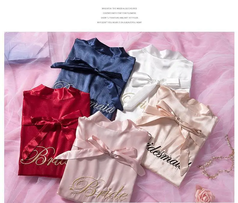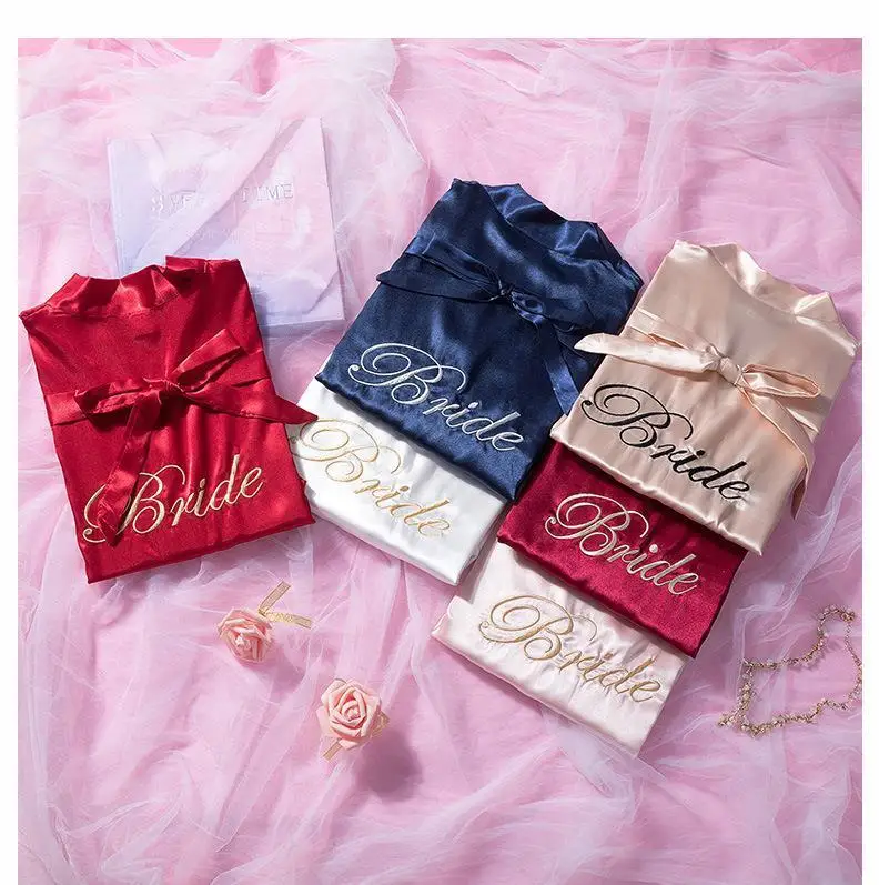 Bride Bridesmaid Wedding Robe Embroidery Kimono Bathrobe Gown Nightgown Casual Satin Short Women Sexy Nightwear Sleepwear