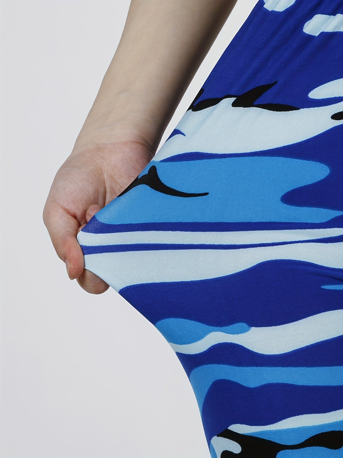 Camouflage Gray-Green Women's Casual Leggings, Cropped Length