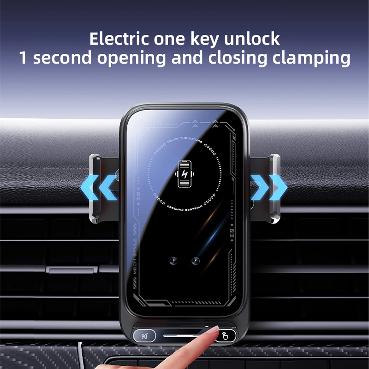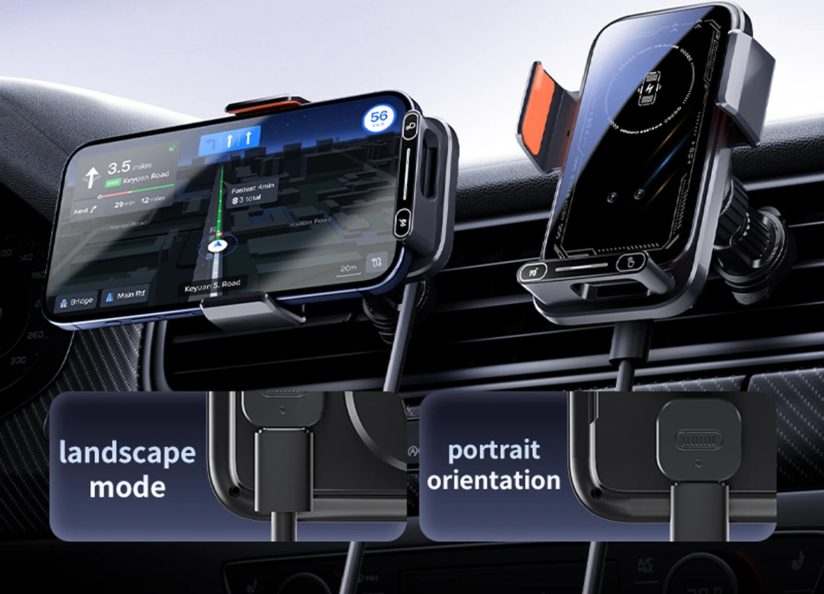 Upgrade your driving experience with our Smart Car Phone Mount. Featuring wireless charging, auto rotation capability, and vent mount design, this sleek device keeps your phone secure and charged while on the go. The MECH STYLE design showcases cutting-edge technology with ultra-stable performance. Compatible with most smartphones and easy to install on car air vents. Drive with confidence and make every journey smarter.