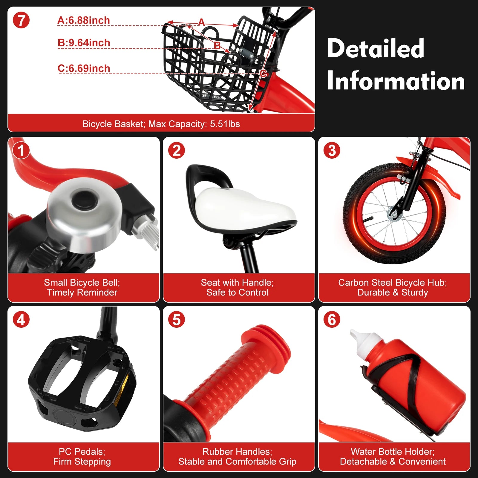 Children Bike Boys Girls Toddler Bicycle Adjustable Height Kid Bicycle with Basket for 2-4 Years Old Blue / Red / Yellow