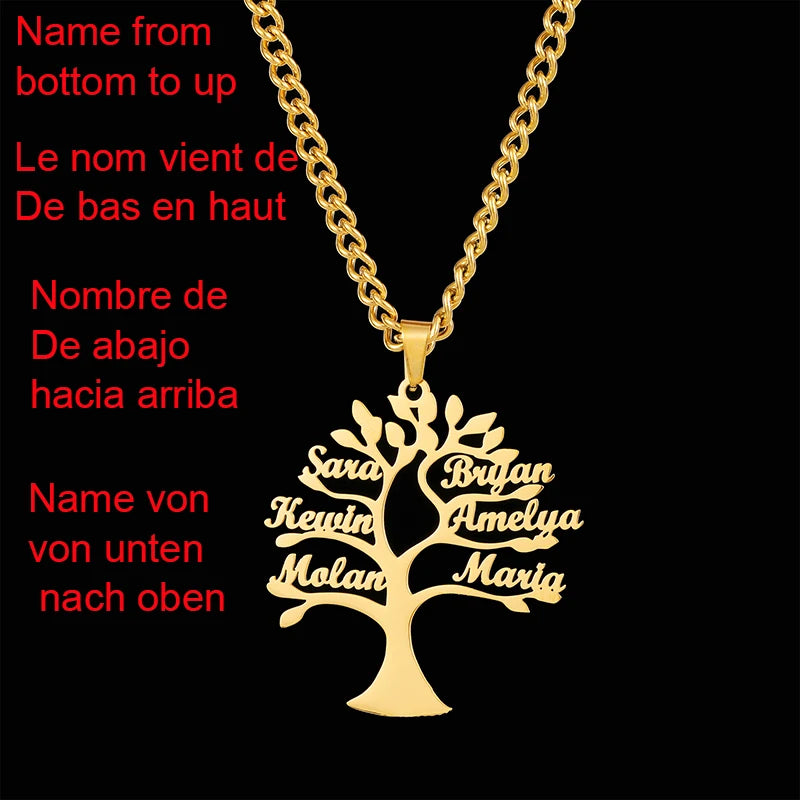 Custom Tree of Life Necklace for Women Men Stainless Steel Family1-6 Names Pendant with 3mm chain Parents Friends Jewellery Gift