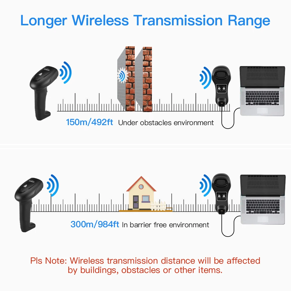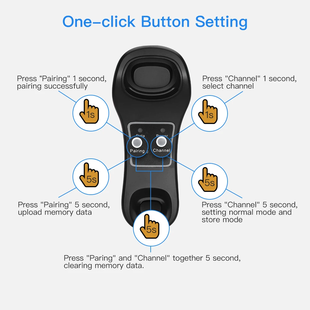 ①. Receive Barcode Data: Via advanced radio frequency wireless technology connection with your device to receive barcode data