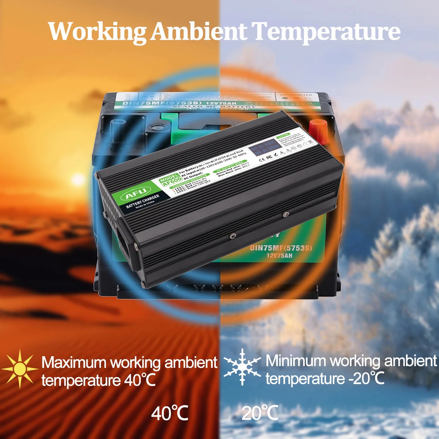 Three-stage Intelligent Charging Mode: Constant Current~Constant Voltage~Trickle(Floating Charge) to Ensure Battery Fully Charged (Floating Charge is when Lead Acid charger) |