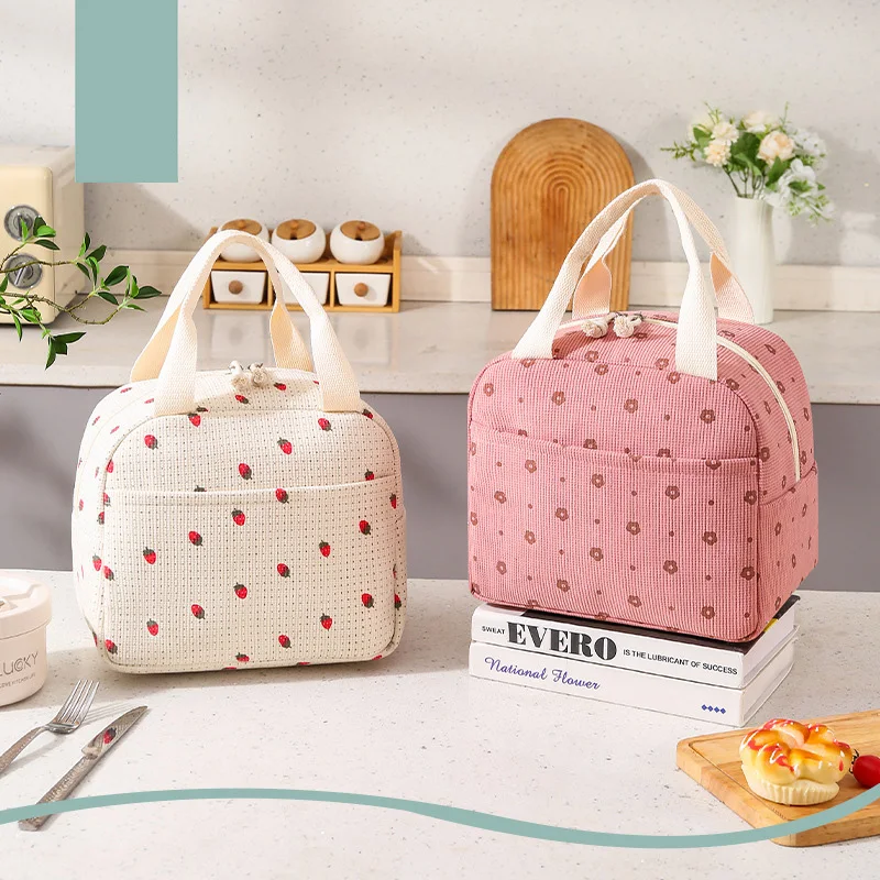 Fancy corduroy lunch bag Student office lunch box Thermal insulation bag Waterproof portable portable cute meal bag ice bagA-DH
