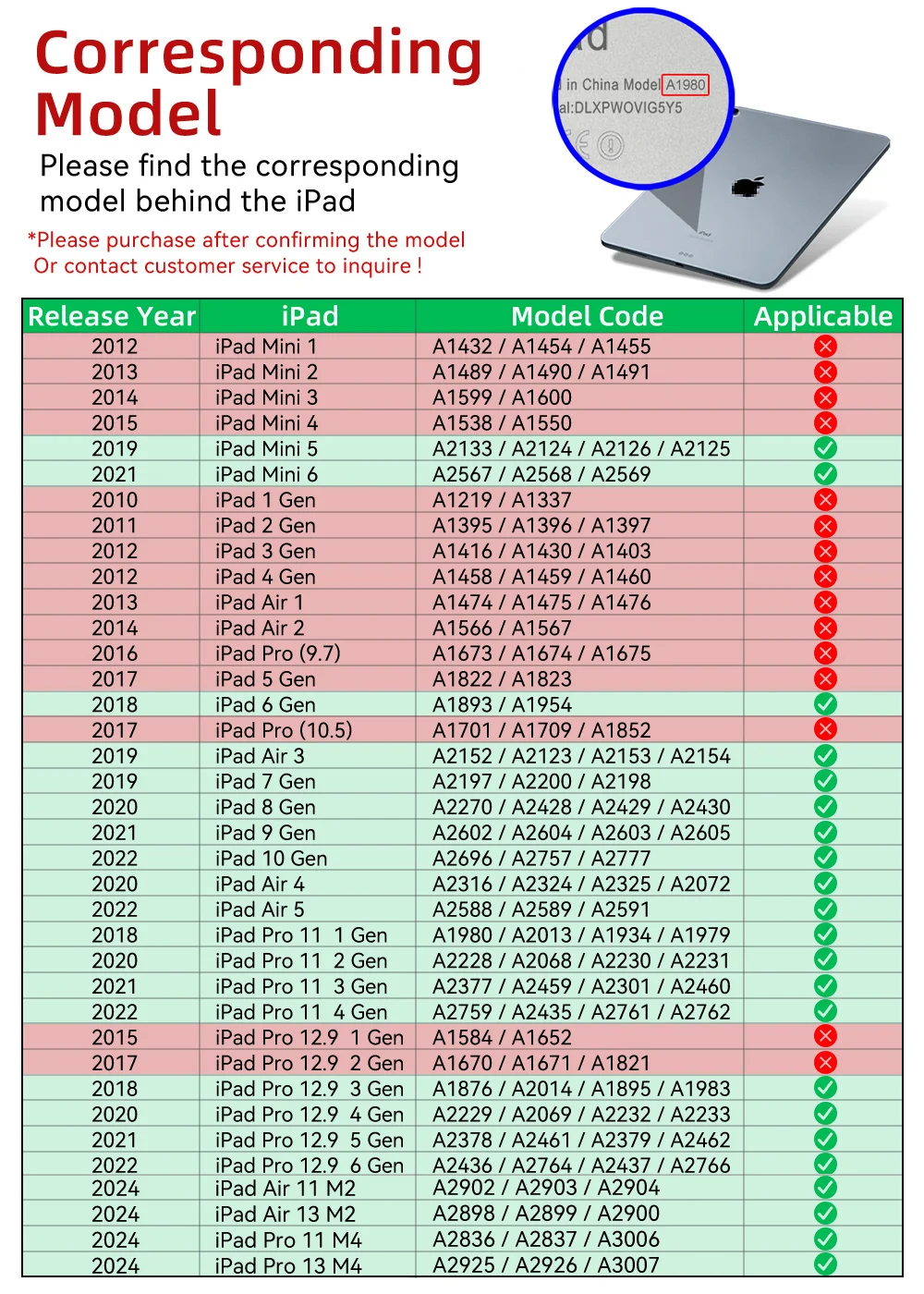 Suitable model 1: For 2018 iPad 9.7 6th Generation