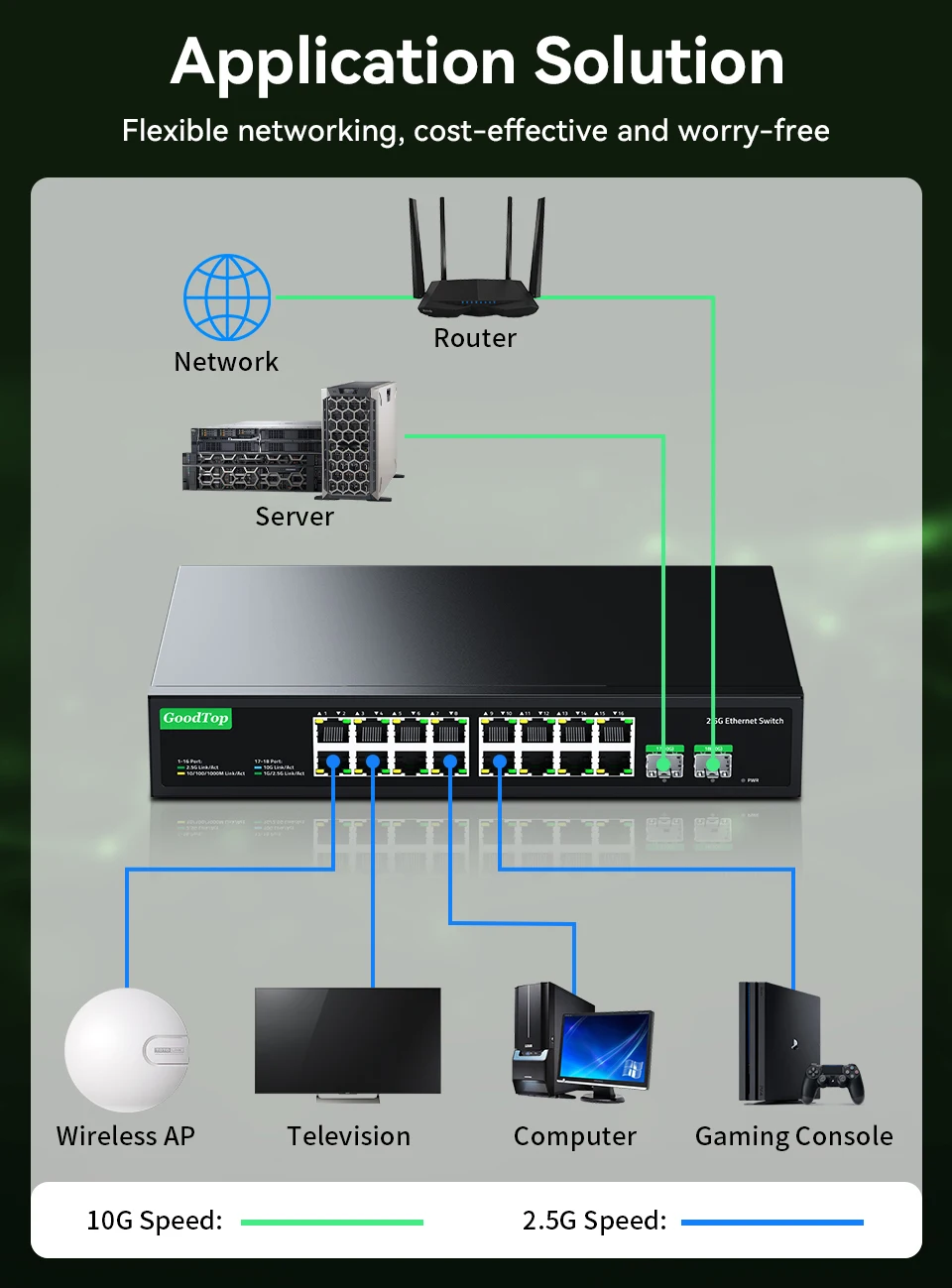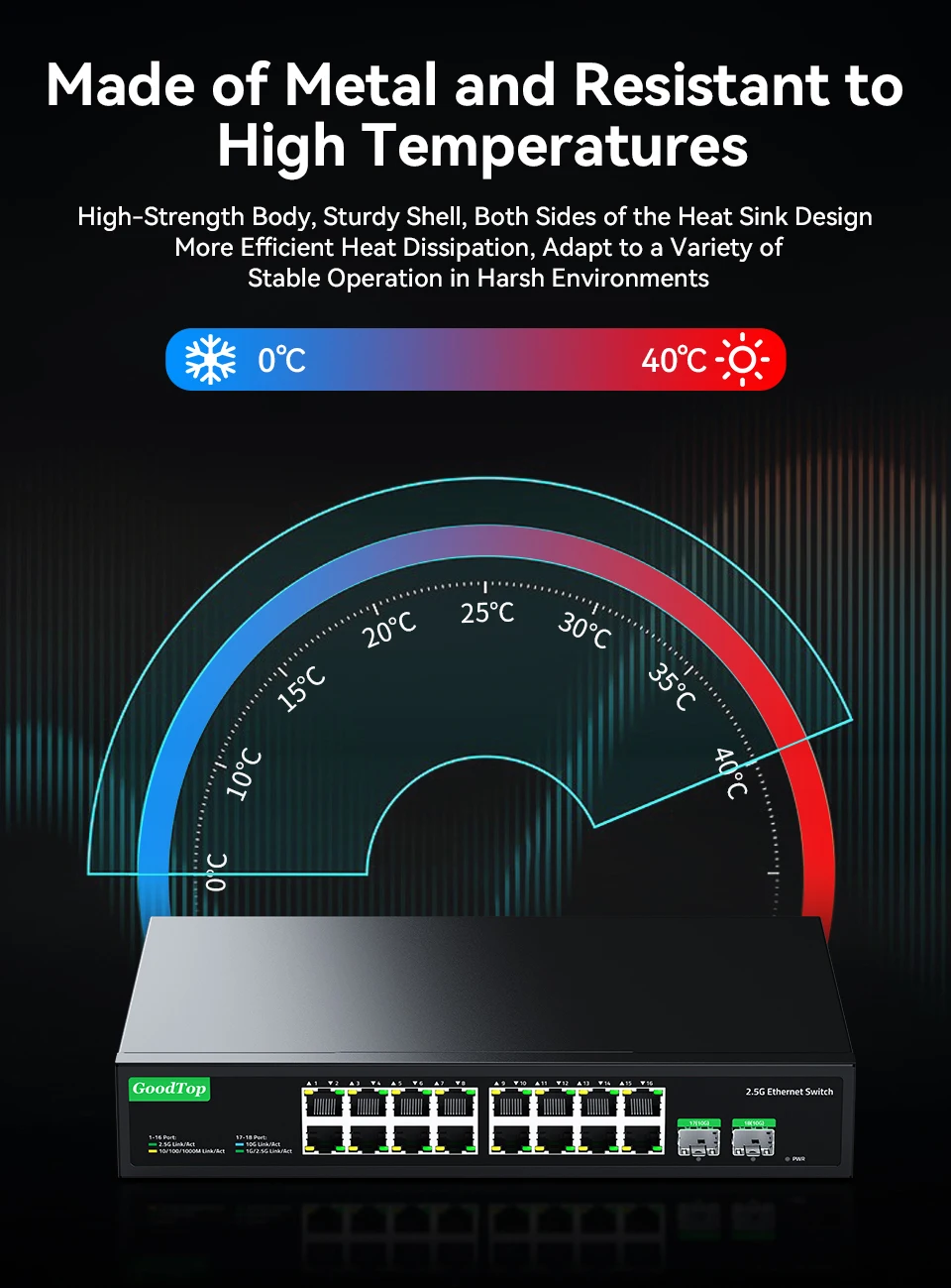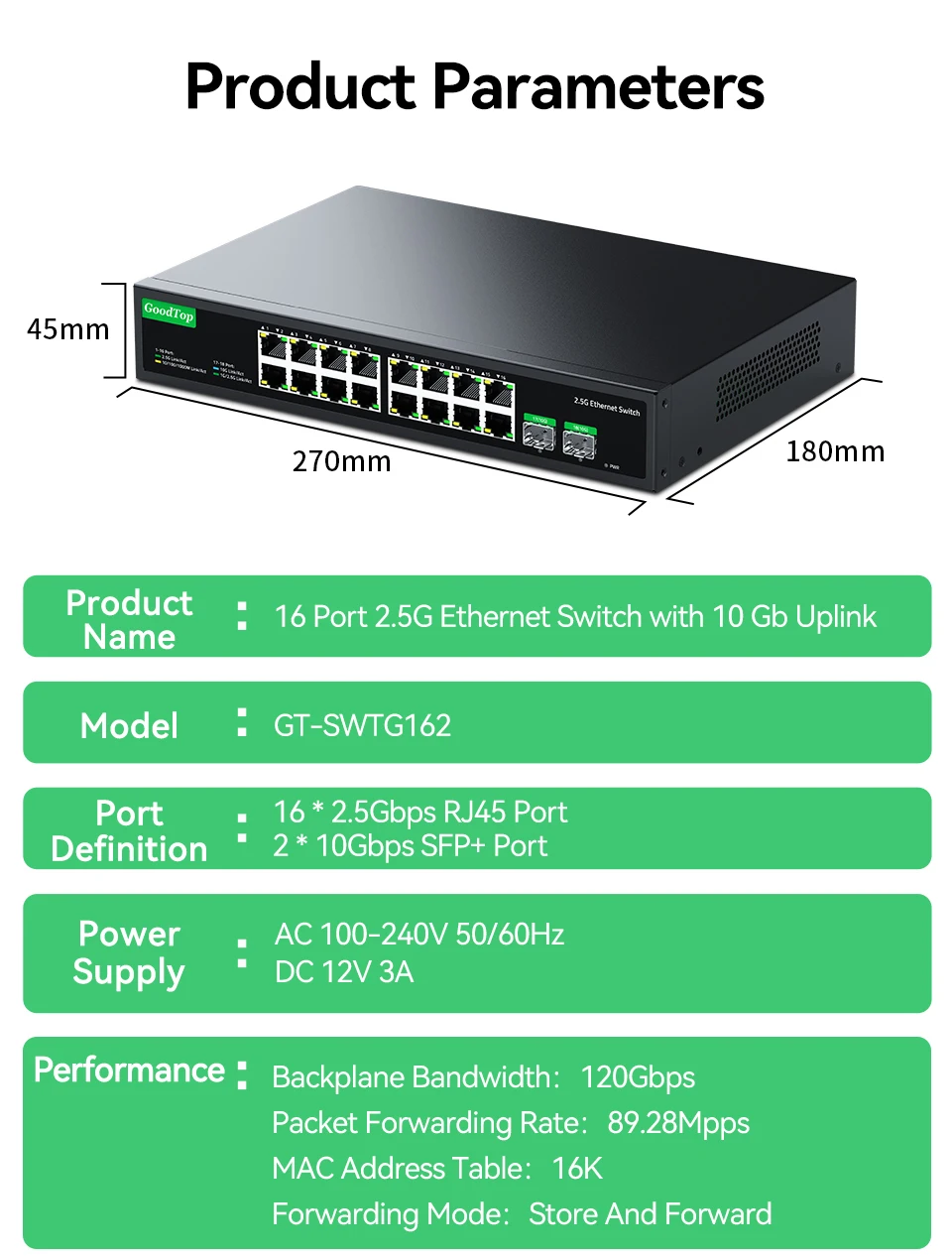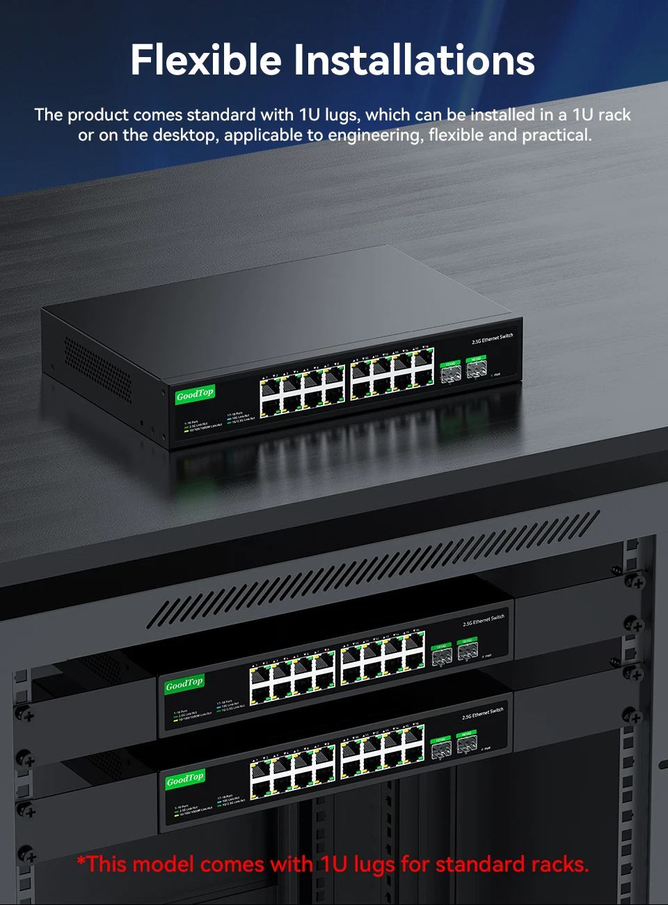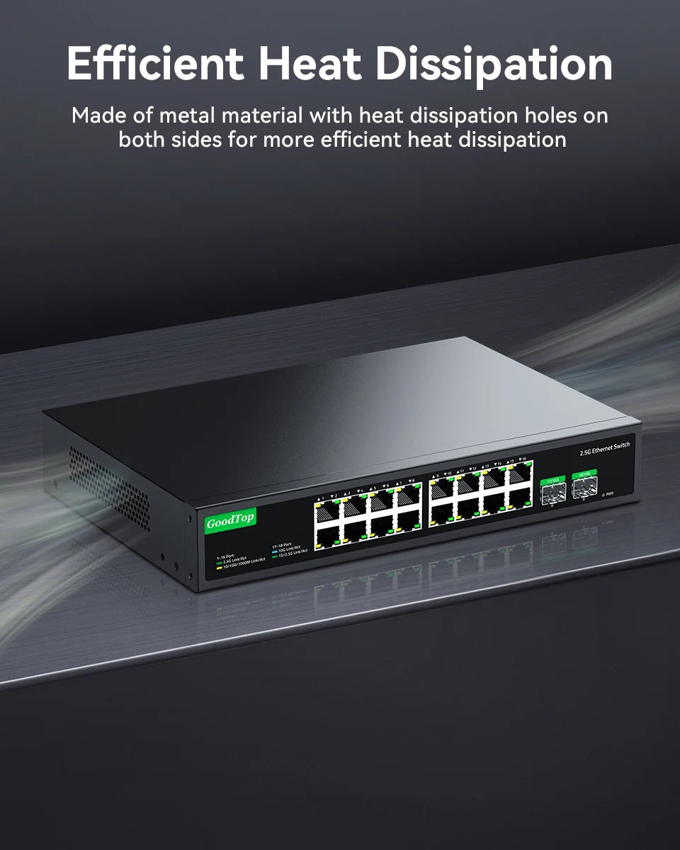 GoodTop 16 Port 2.5G Ethernet Switch with 2 Port 10G SFP+ Network Switch 120G Bandwidth Unmanaged Networking Home Lab Switch