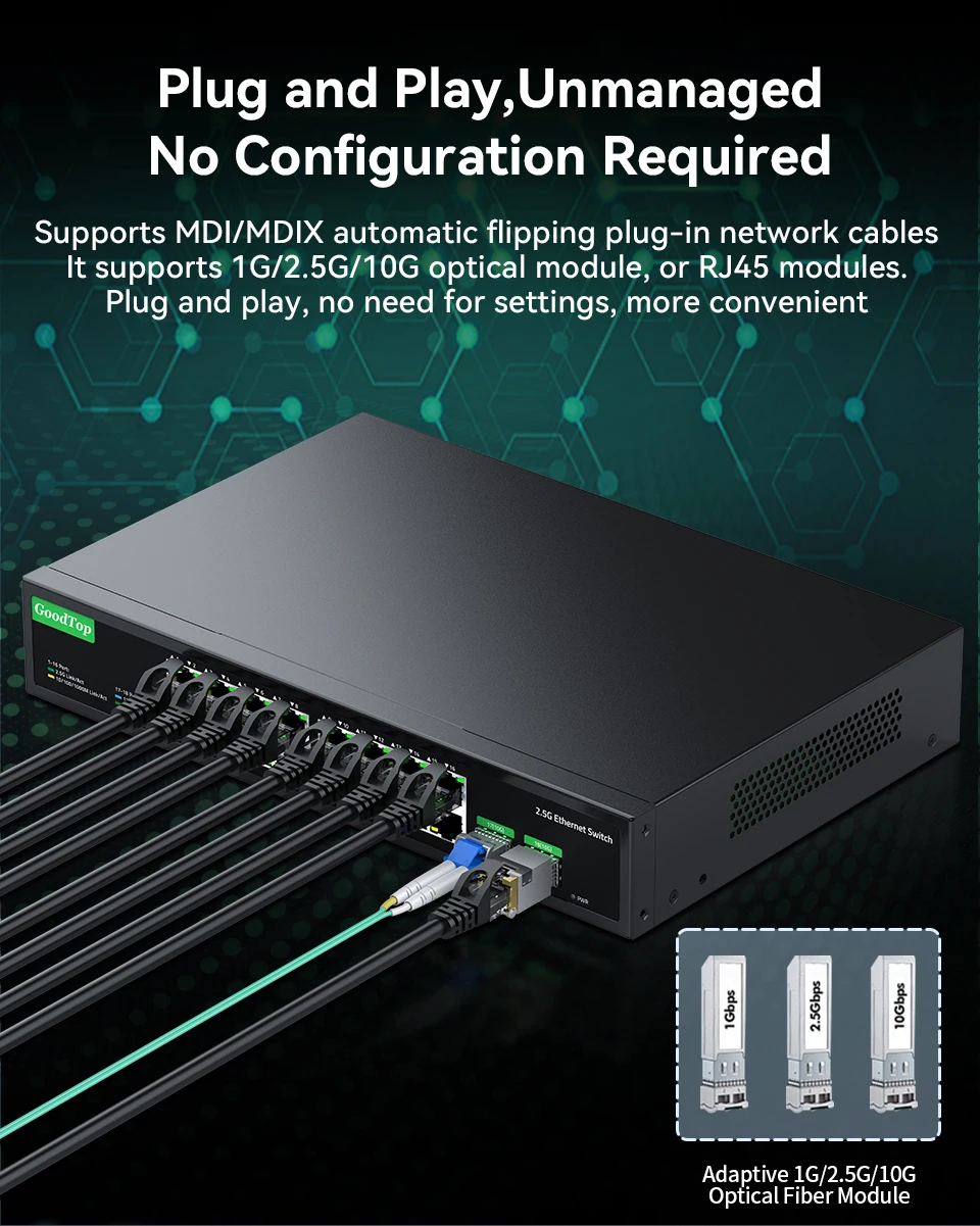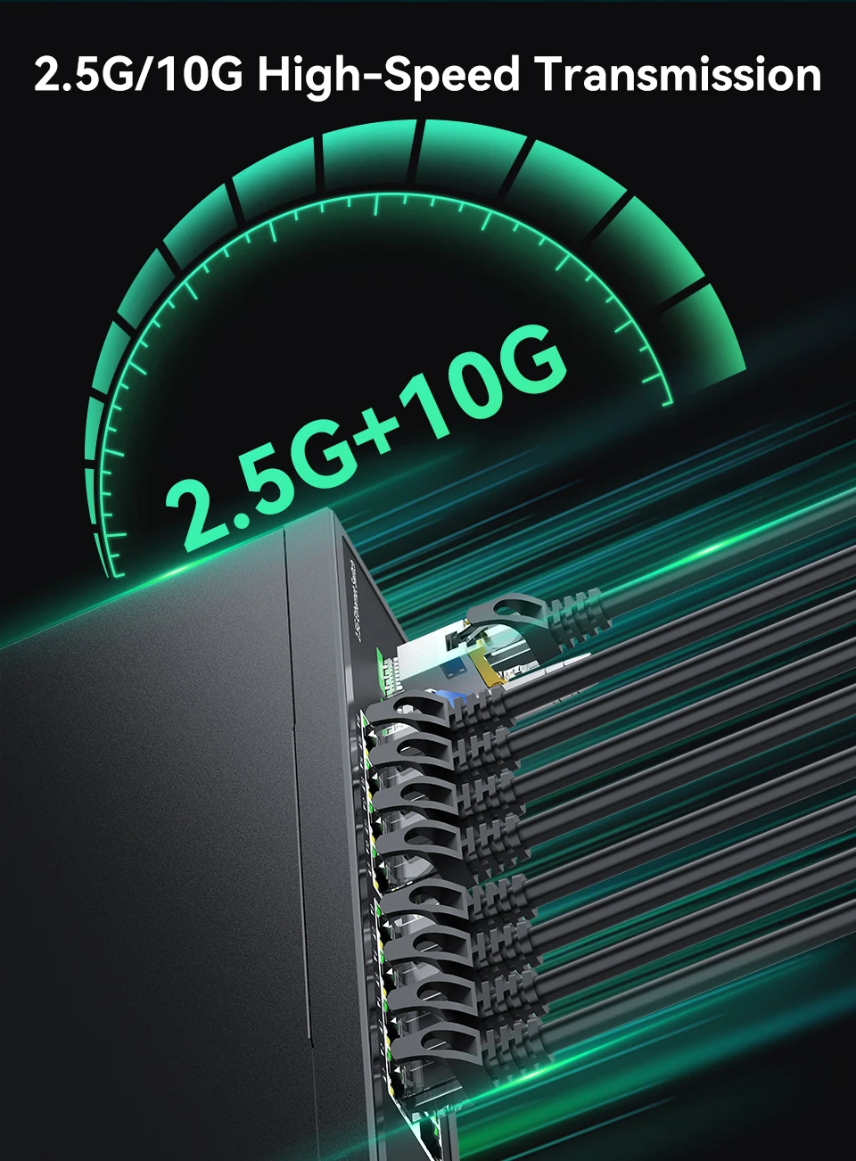 10G SFP+ Port: Supports 10M/100M/1G/2.5G/10G