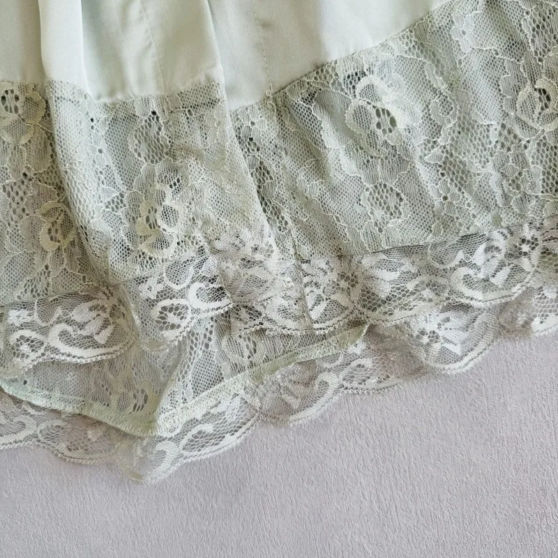Green Robe Elegant Hem Lace Trim Bathrobe Gown Sleepwear Women Rayon Homewear Intimate Lingerie Bride Wedding Robe Loungewear