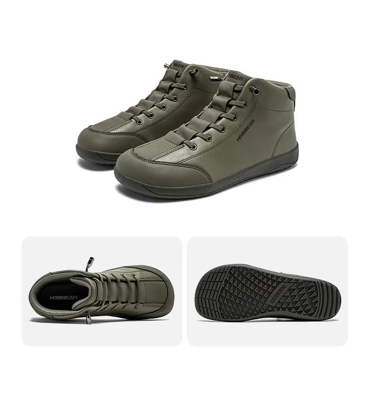 HOBIBEAR Mid-Top Barefoot Shoes Unisex Wide Toe Minimalist Ankle Boots Artificial Leather Outdoor Non-Slip Sneaker