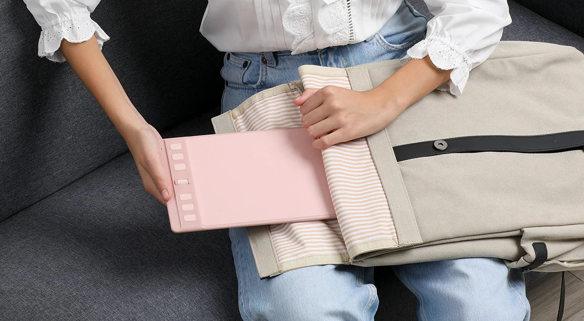 Inspiroy 2 narrows its width and keeps the overall thickness to less than 1cm, allowing you to easily pack the tablet into your backpack for drawing on the go. More importantly, the thinner body reduces wrist discomfort when creating.