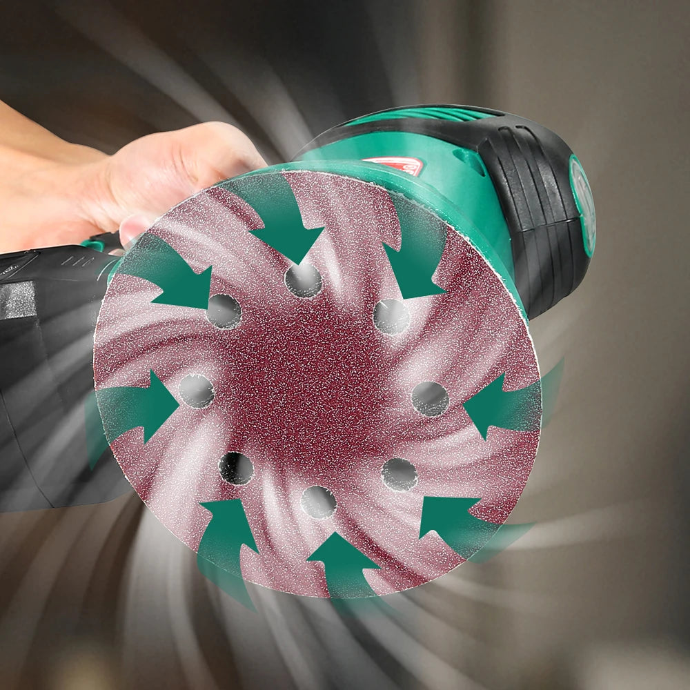 • Pack of 12 sandpapers and diameter 125 mm: the orbital sander contains 12 sandpaper sets with a diameter of 125 mm: 4 x 80 grit, 4 x 120 grit and 4 x 240 grit. With the sandpaper set for your random orbital sander or disc sander, you can skilfully grind e.g. paint or varnish from wood or polish it smoothly - different grits from coarse to fine make it possible