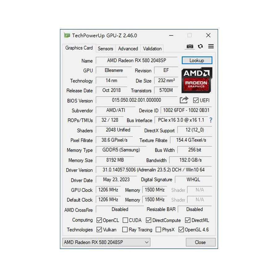 GPU Model: Radeon RX580