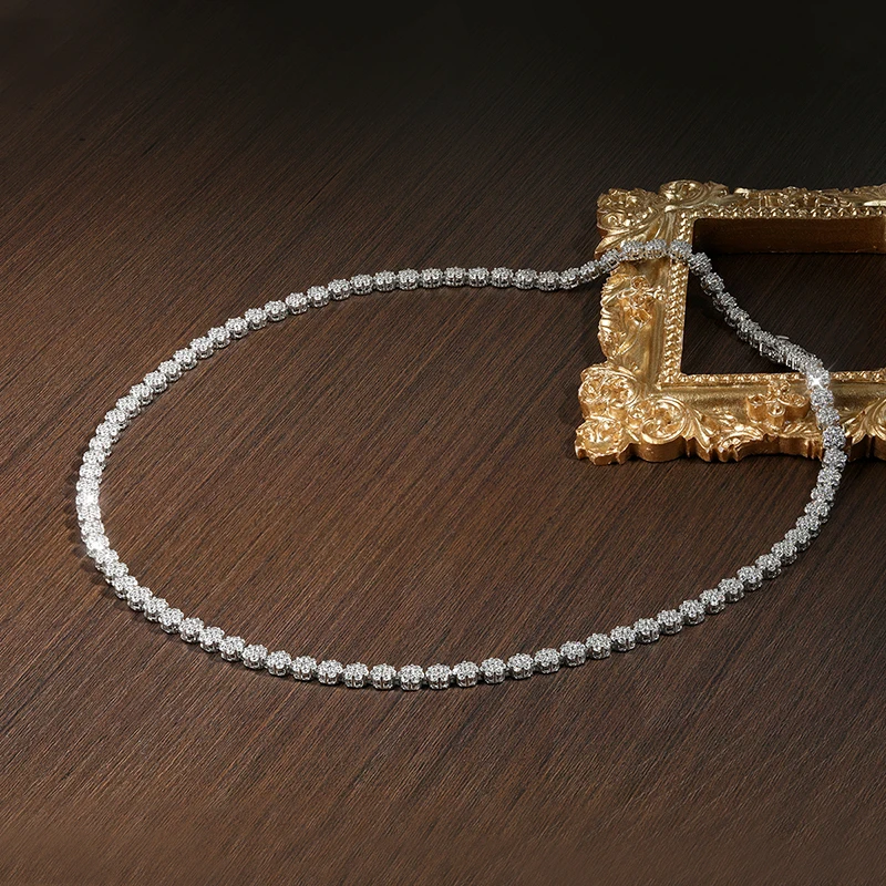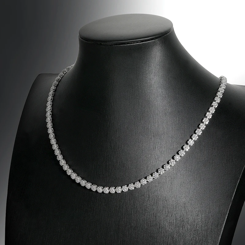 KNOBSPIN 7.5 - 12.81ct D VVS1 Moissanite Tennis Necklaces for Women GRA Certified 925 Sterling Silver Plated 18k Flower Necklace