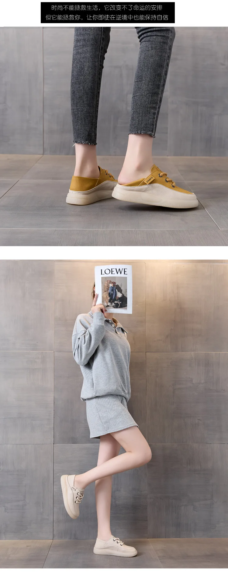Koznoy 3.5cm Cow Genuine Leather Women Flats Fall Vulcanize Chunky Sneaker Loafer High Brand Platform Slippers Autumn Shoes