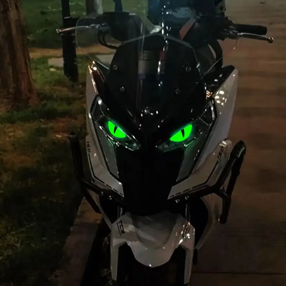 Luminous Eyes Car Stickers Green Glowing Devil's Eye Car Motorcycle Headlight Styling Sticker 3D Drip Glue Cat Eye Decoration