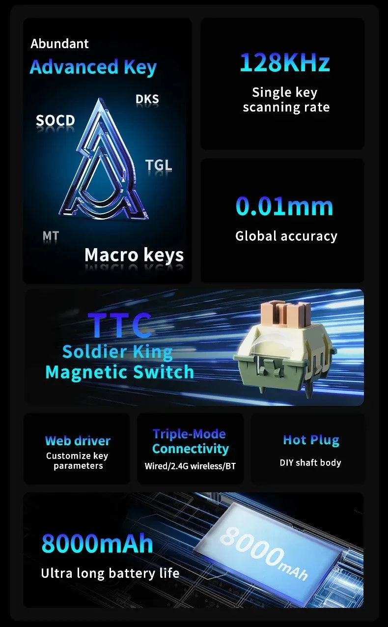 New Ajazz Ak820 Max Ultra/MAX Magnetic Switch Mechanical Keyboard 8k 128khz 0.01mm Rgb Customized Wired Gaming Keybaord E-Sports