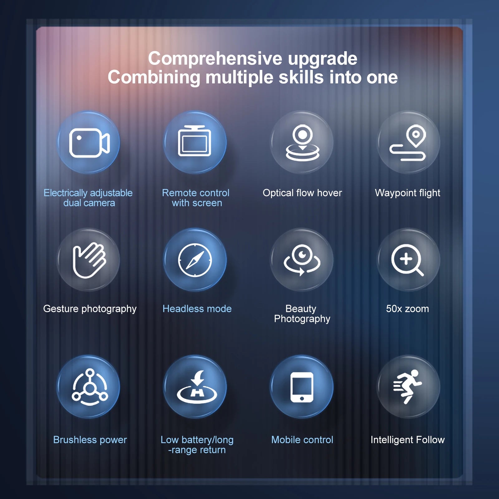 New E88 E99 Drone Remote Control with Screen Dual Camera Optical Flow Localization 2.4G RC Quadcopter One-button Take-off Drones
