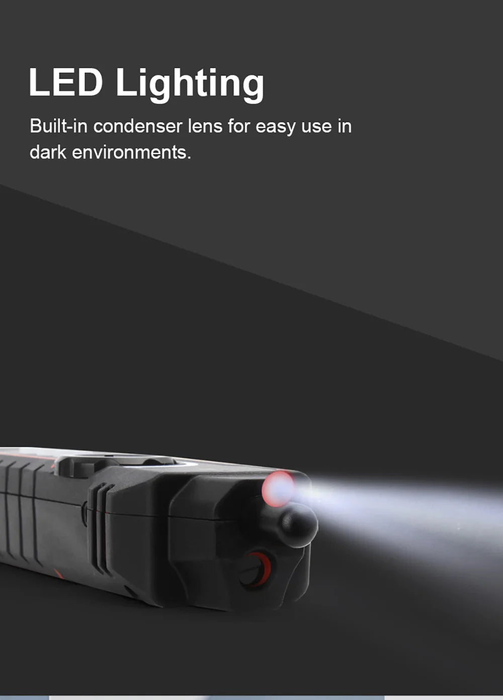 Built-in condenser lens for easy use in dark environments.