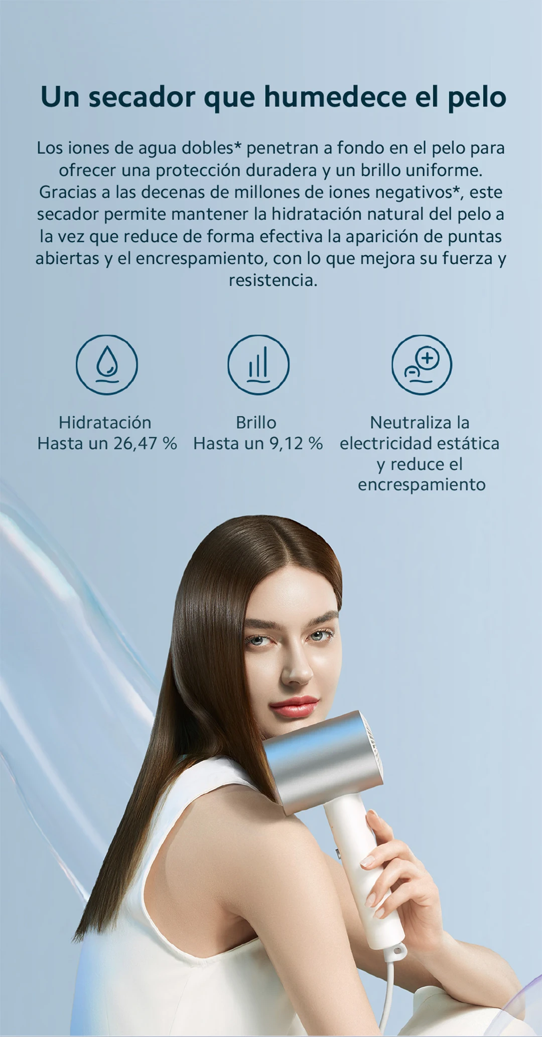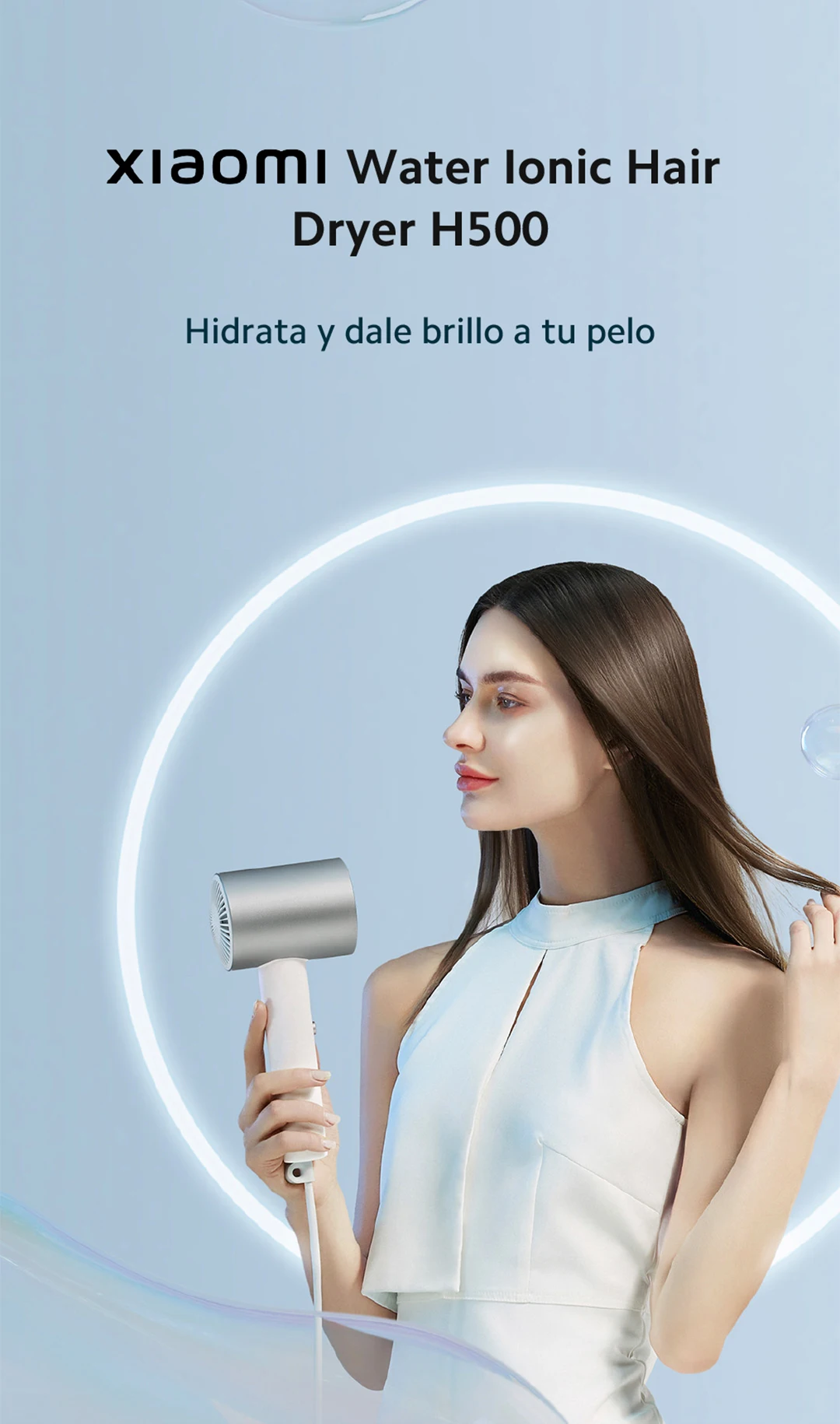 Official|Xiaomi Water Ionic Hair Dryer H500|Terapia de iones de agua doble|Flujo de aire ultraalto de 20 m/s|Cuerpo de metal"
