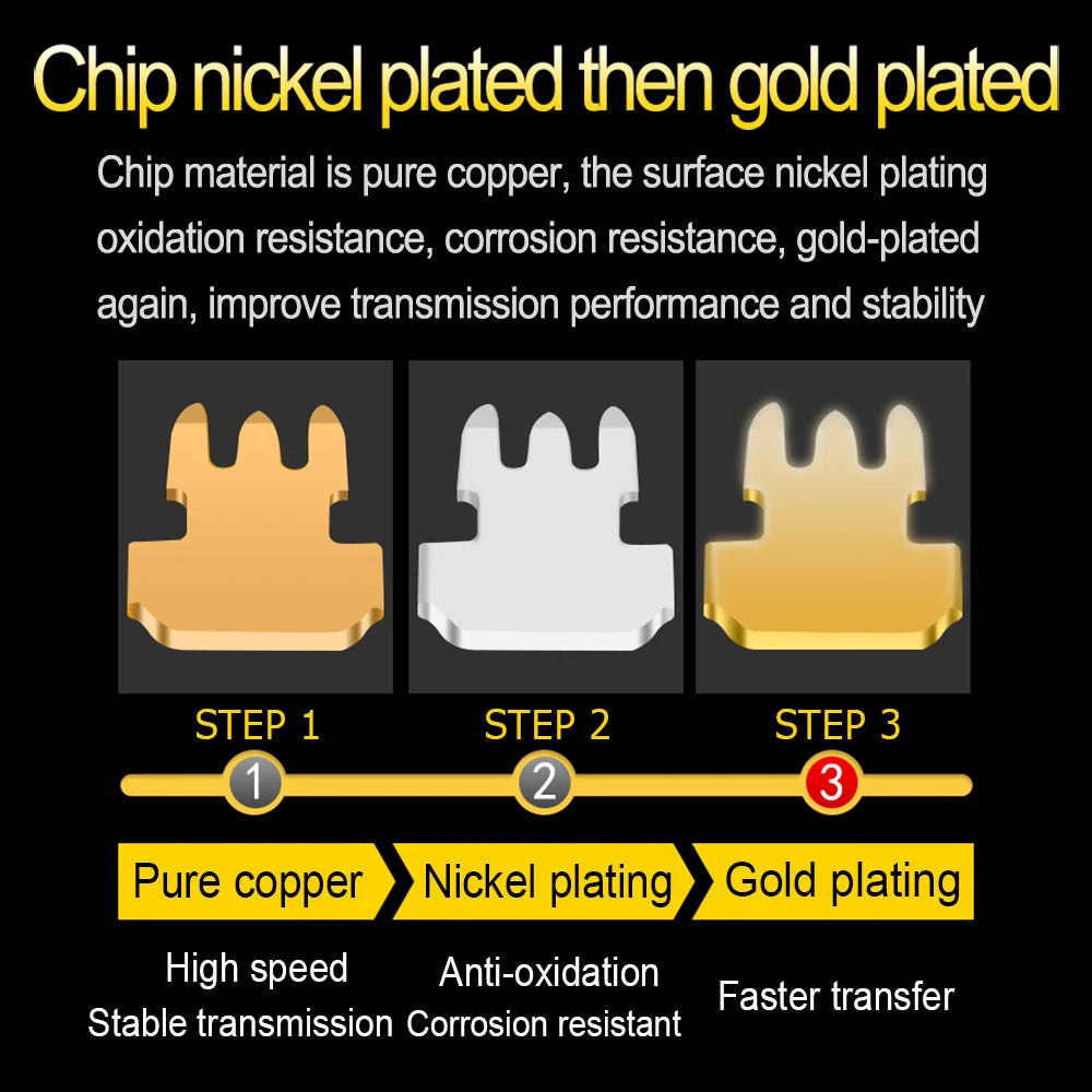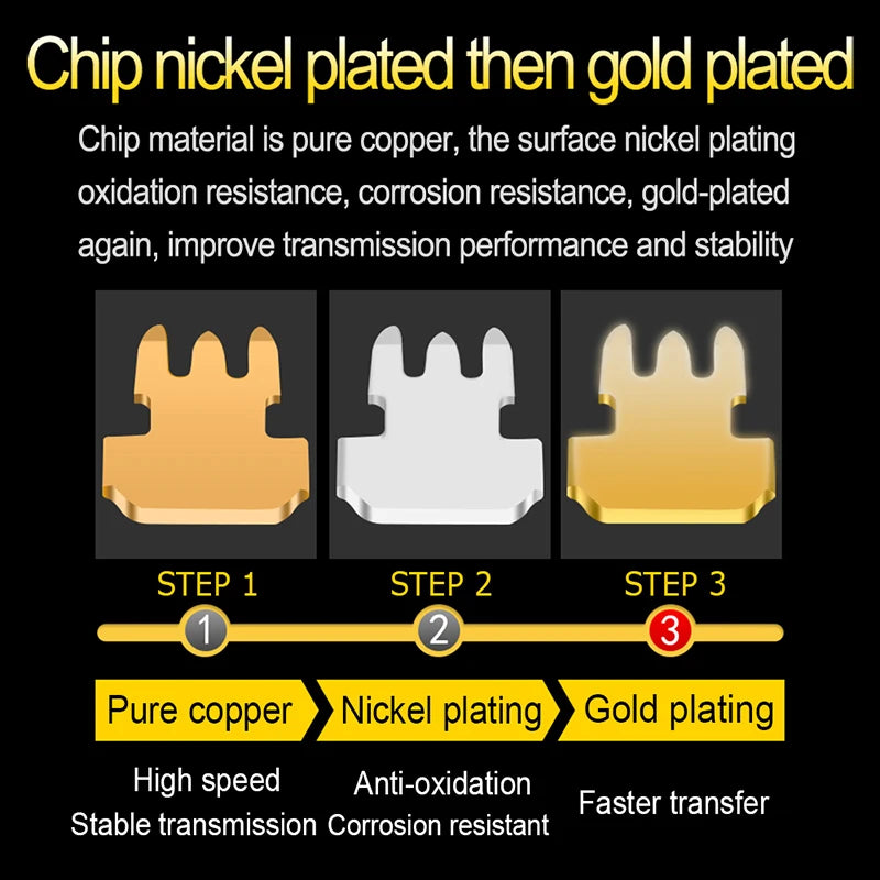 Gold plated leads for better data transmitting and higher signal strength.