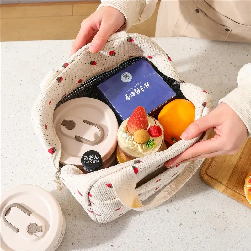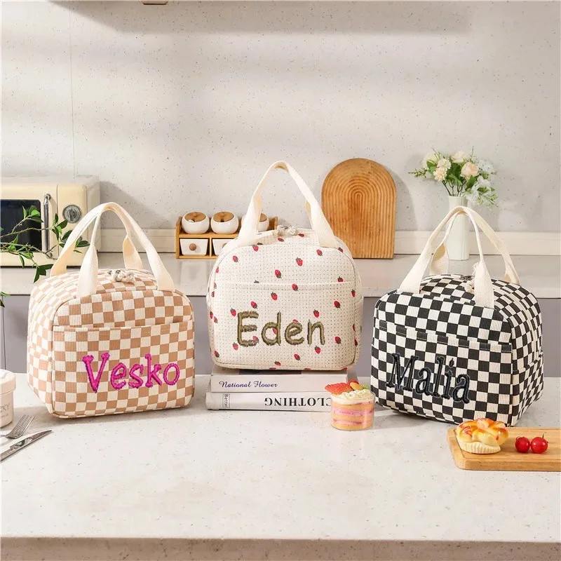 Personalized Custom Name Corduroy Lunch Bag, Thermal Insulated, Kid School Lunch Box, Picnic Cooler, Storage Handbag Food Pouch
