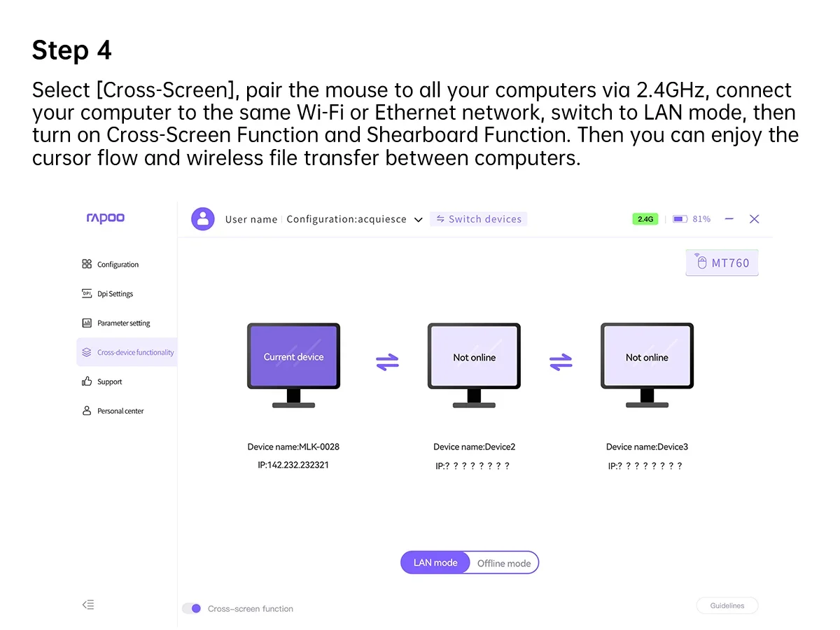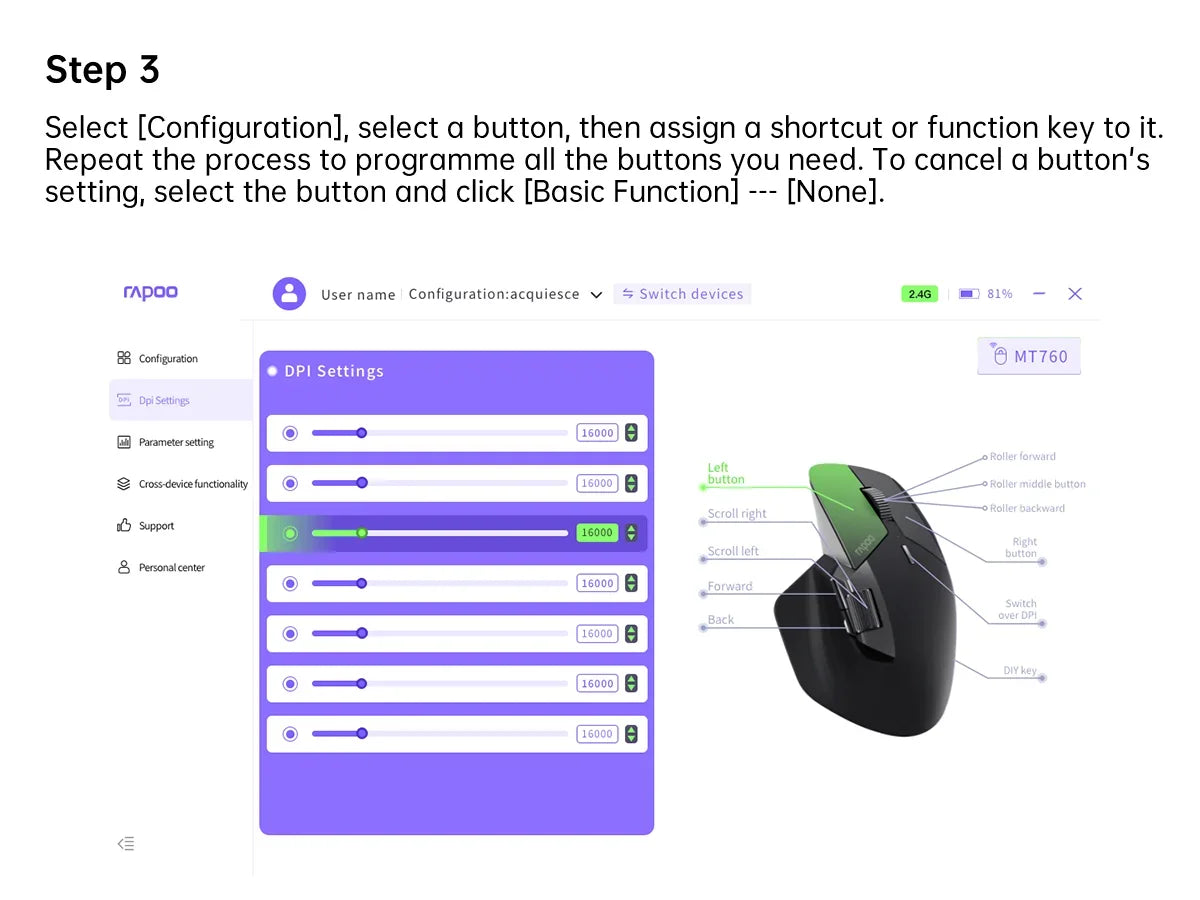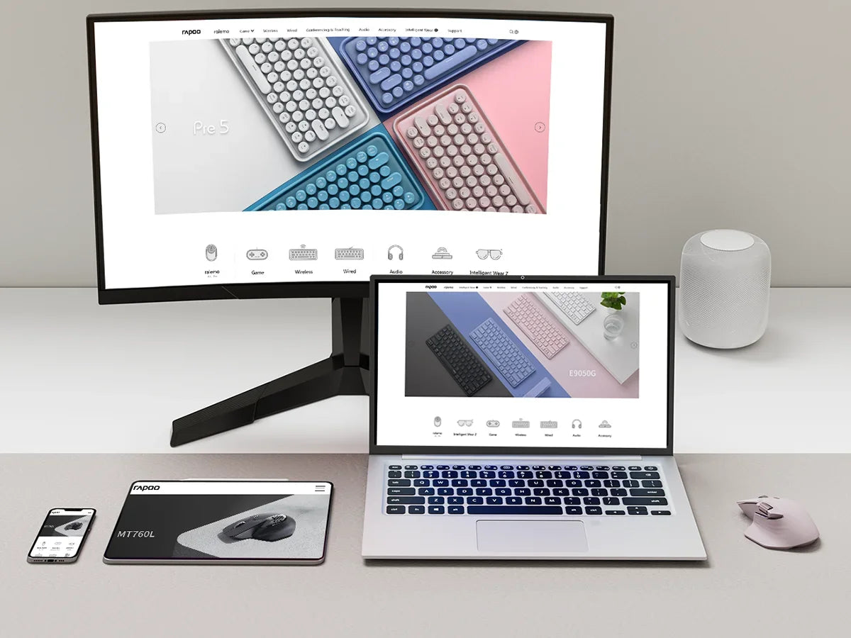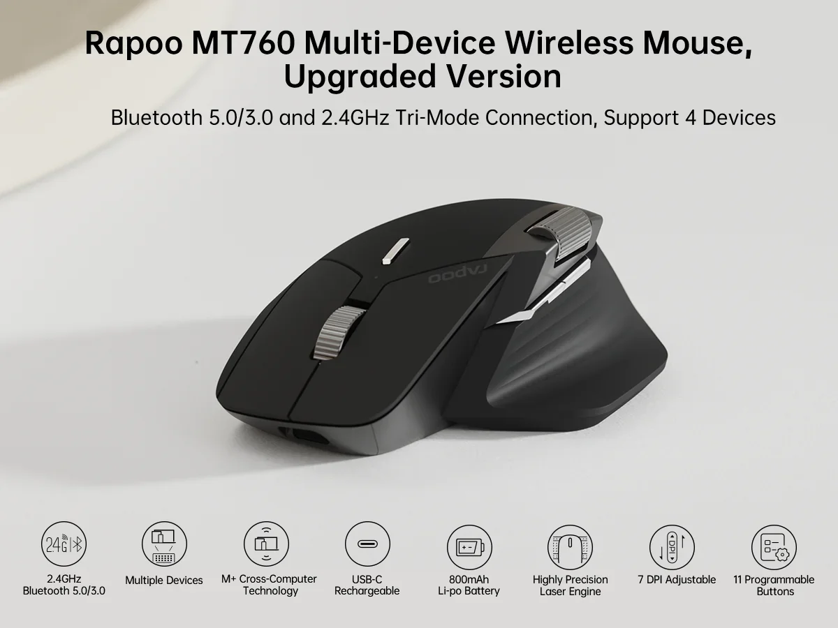 Rapoo MT760 Rechargeable Multi-mode Wireless Mouse Ergonomic 3200 DPI Easy-Switch Up to 4 Devices Bluetooth Mouse Office Mice