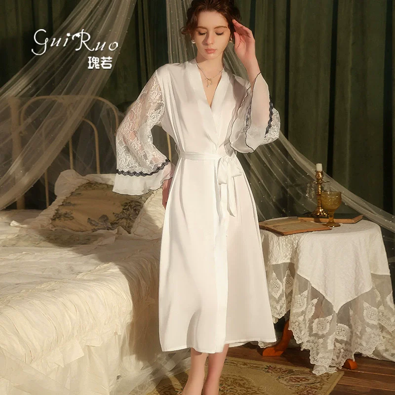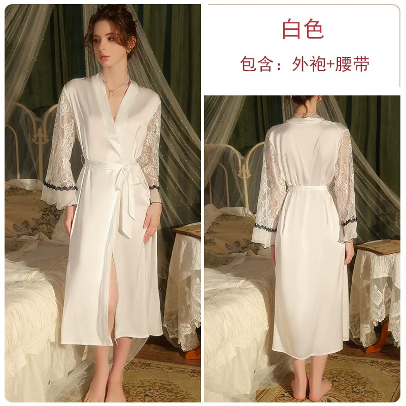 Robe Bride Wedding Party Dress 2025 New Women Satin Lingerie Mariage Kimono Mesh Panel Satin Long Vestidos De Novia