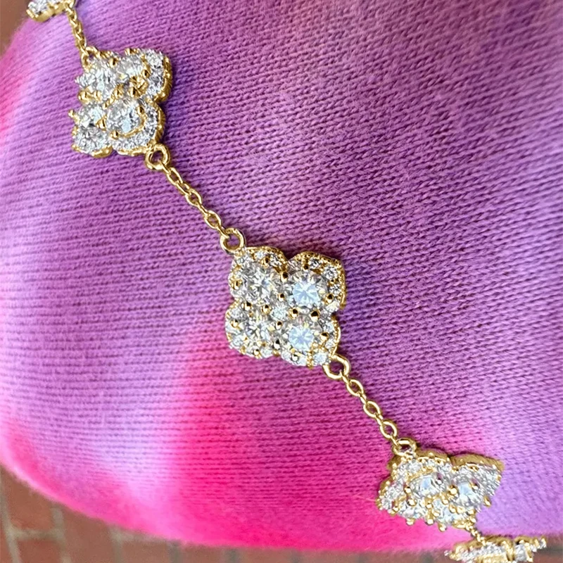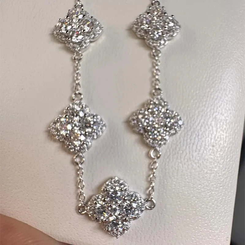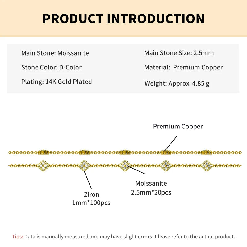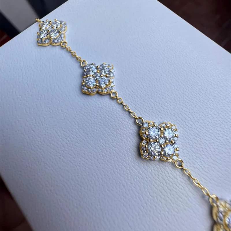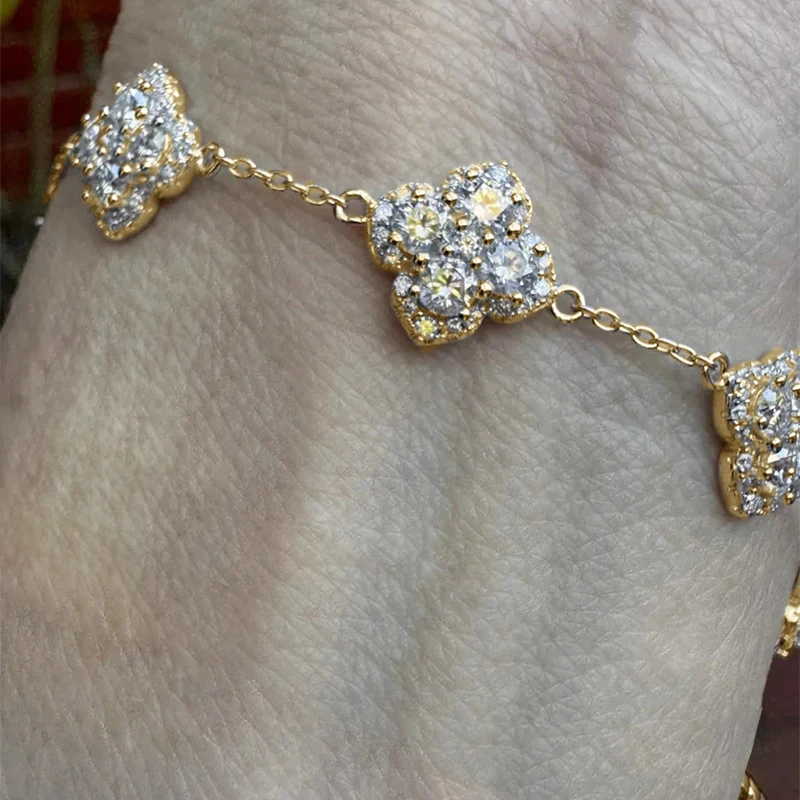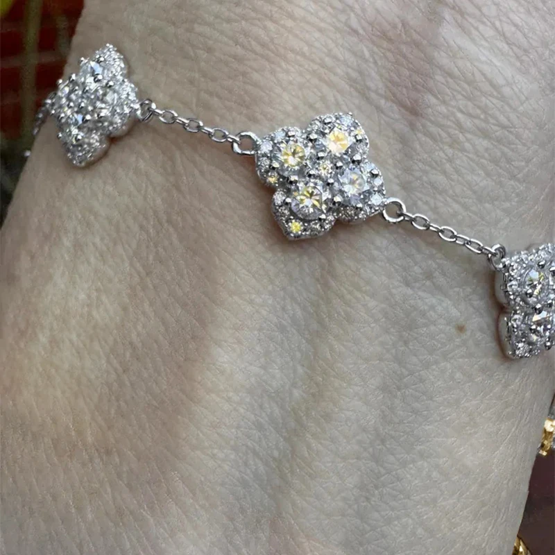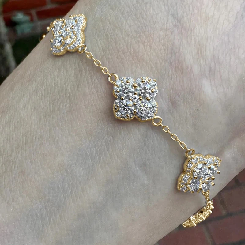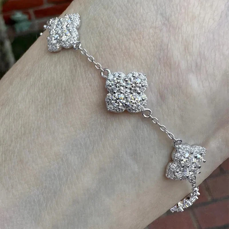 Rrjzz Four-Leaf Clover Moissanite Women Bracelet D Color VVS1 Lab Created Imitation Diamond Round Cut Jewelry GRA Certificated