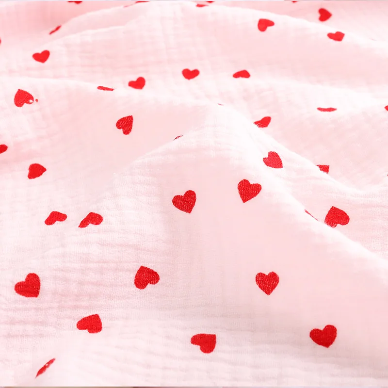 Soft Heart Print Cotton Sewing Fabric Crepe Double Layer Gauze Cloth Valentine's Day Diy Towel Material YHW300530