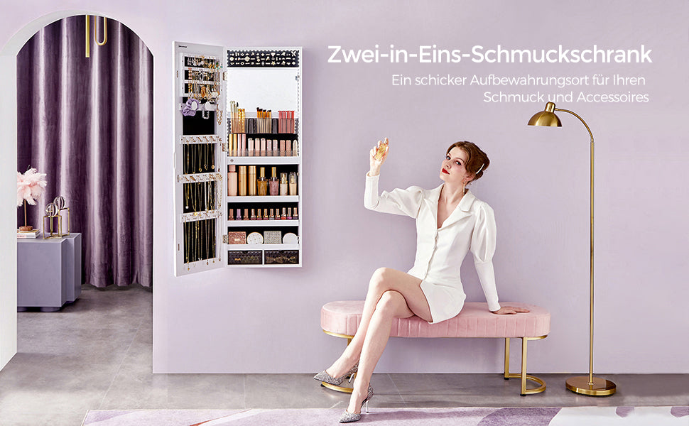 High quality material that lasts for years:Robust MDF and velvet lining make the jewelry mirror cabinet solid on the outside and soft on the inside-this way your valuables are permanently protected from damage or scratches
