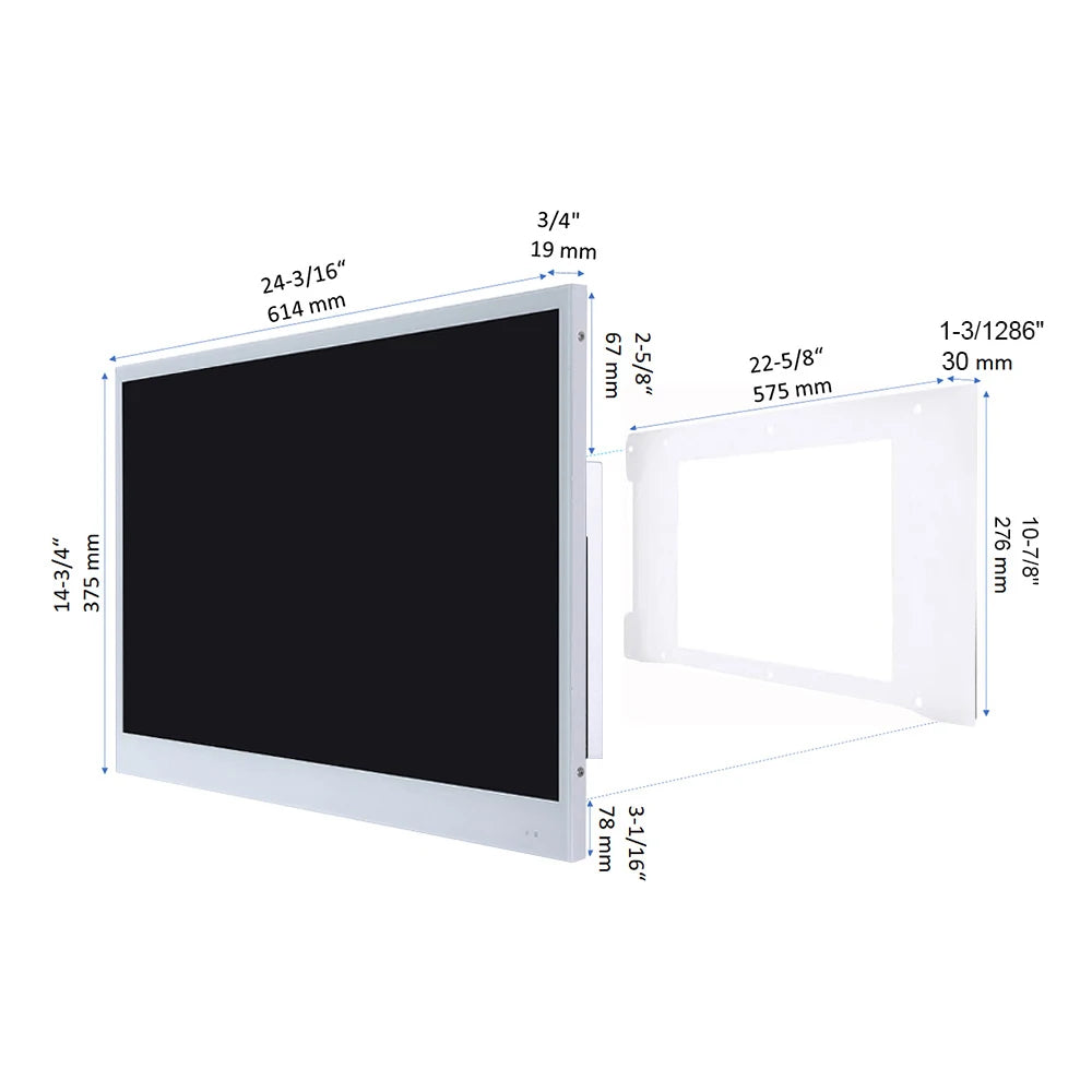 Recess Dimensions for In-wall(mm): 575W x 276H x 30D mm (22.6” x 10.9” x 1.2”)