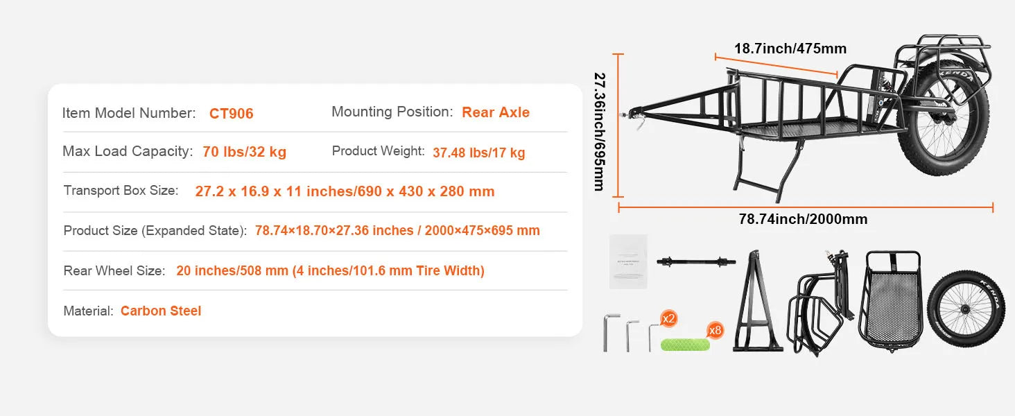 • 70 lbs High Load Capacity: Our bike cargo trailer is your ultimate travel companion, providing a sturdy build and a spacious design capable of handling up to 70 lbs of cargo. Perfect for all your outdoor adventures, from camping trips to picnics, it's the ideal solution for hauling your essentials wherever you go.