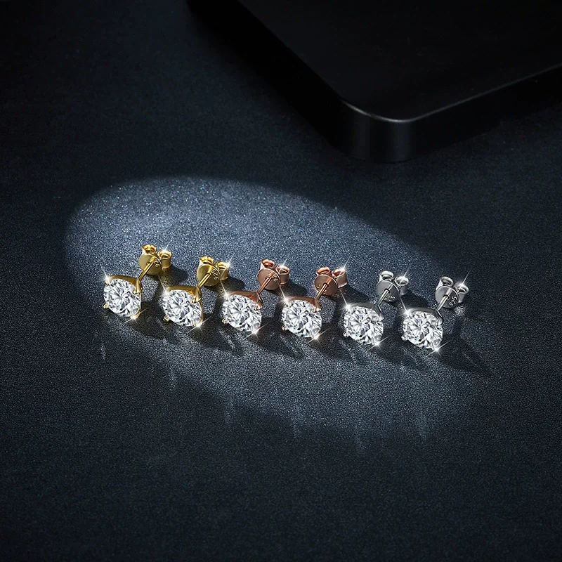 TY 0.1-2CT Moissanite Stud Earrings for Women RoseGold Sparkling Classic Wedding Lab Diamond Earring Pure 925 Silver