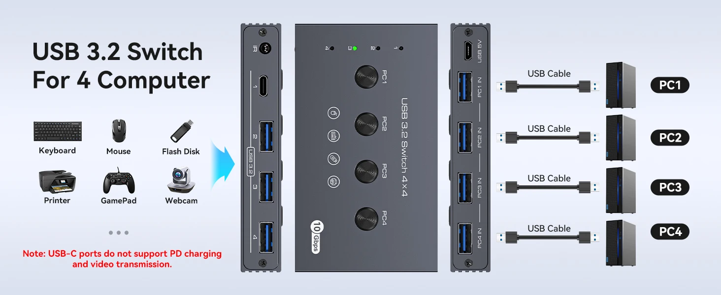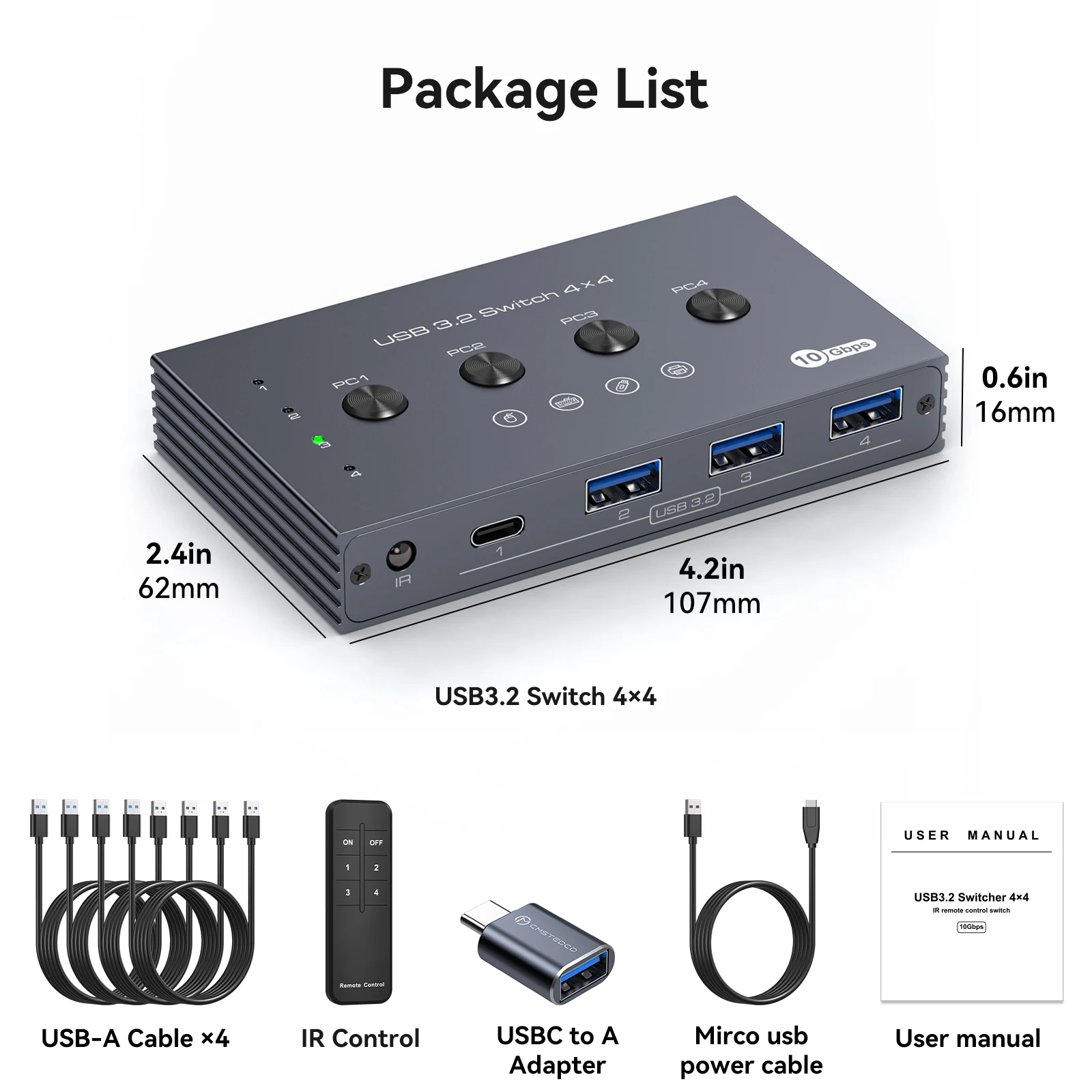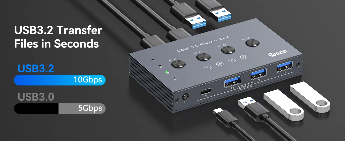 USB 3.2 Switcher KVM Switch Shared Controller Adapter 10Gbps Rate Support Fit Computer Laptop Mouse Keyboard Share 4 USB Ports