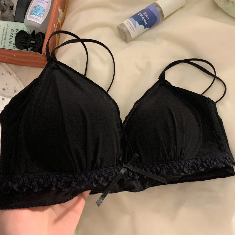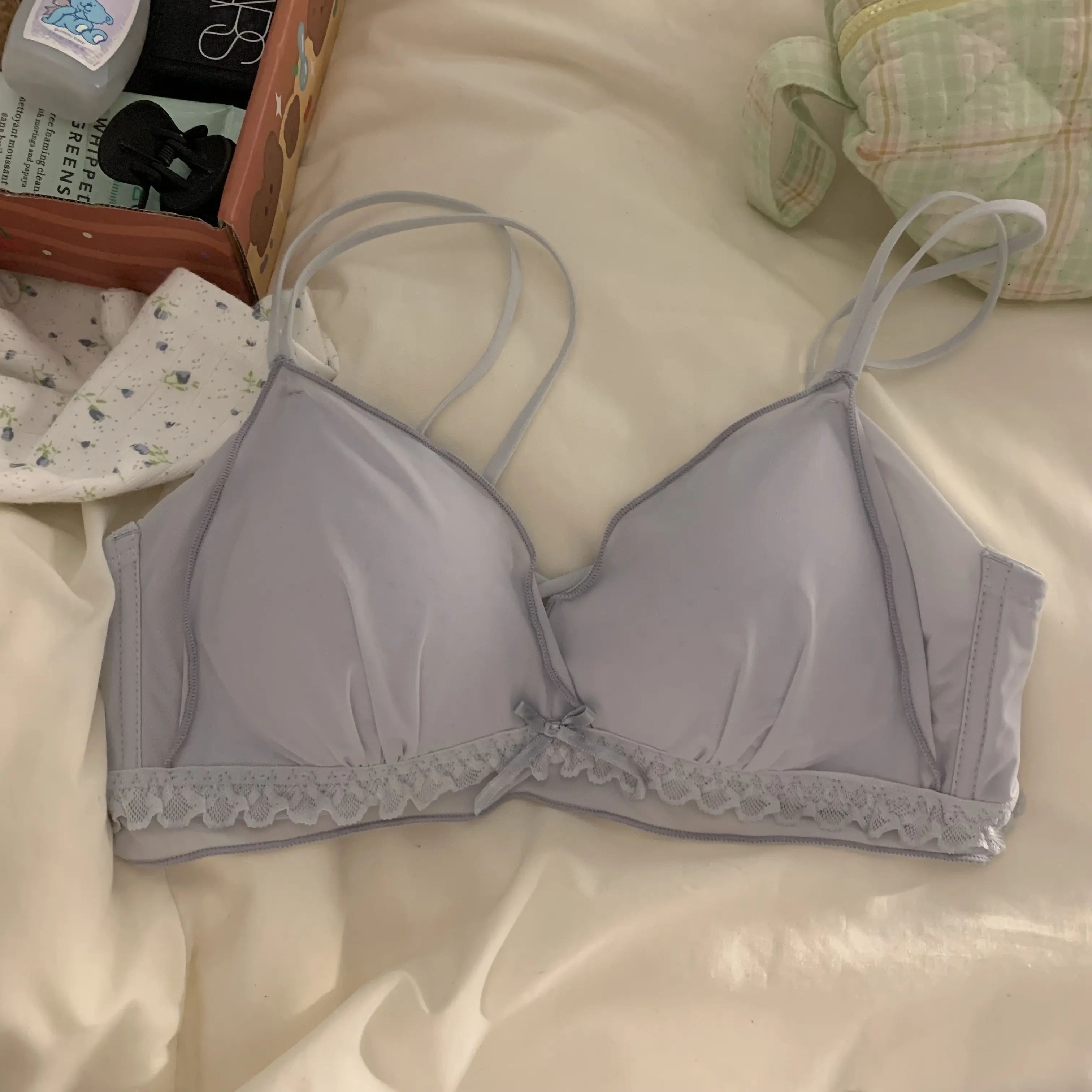 Wirefree Push Up Bra Set for Small Bust | French Ruffle Trim Silk Feel Thin Cups, Sweet Sexy Bralette | Hot MOYISU Sexy Panty AB