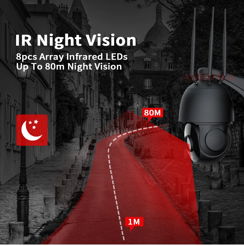 Wireless IP66 80M Auto Tracking 5MP 30X Speed Dome PTZ WiFi Camera with Night Vision and Cloud Storage