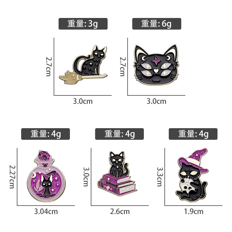 Broche animalière Halloween Potion magique Chaton Série Badge en métal Petit cadeau Broches décoratives en gros Épingles à sac pour sacs à dos